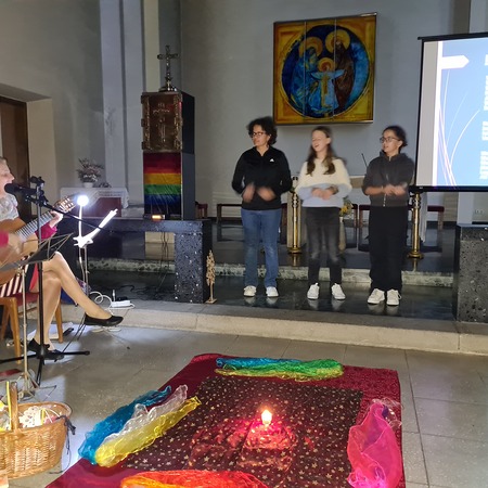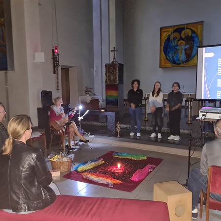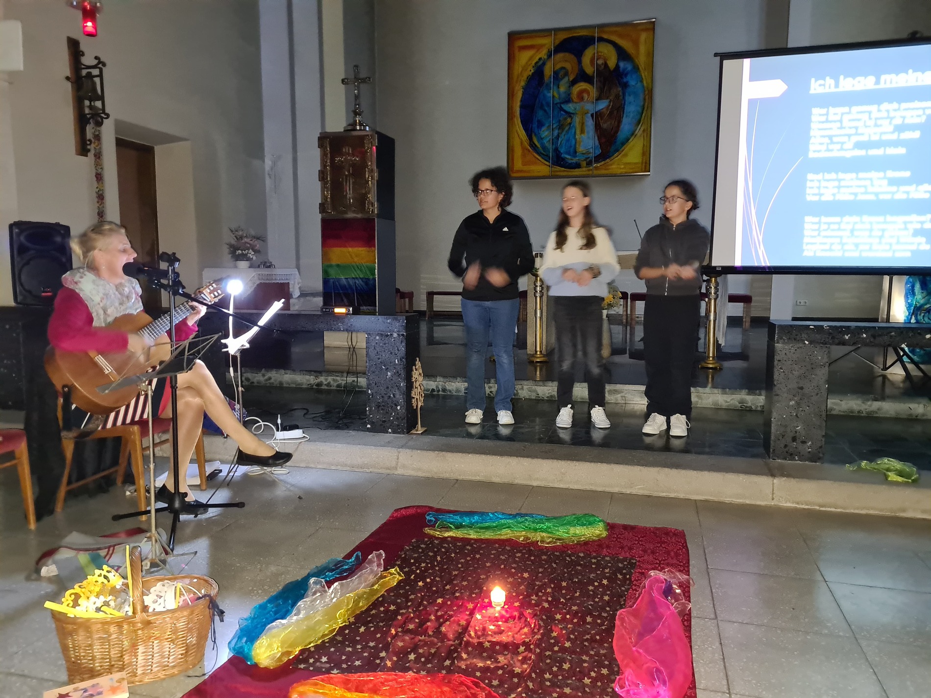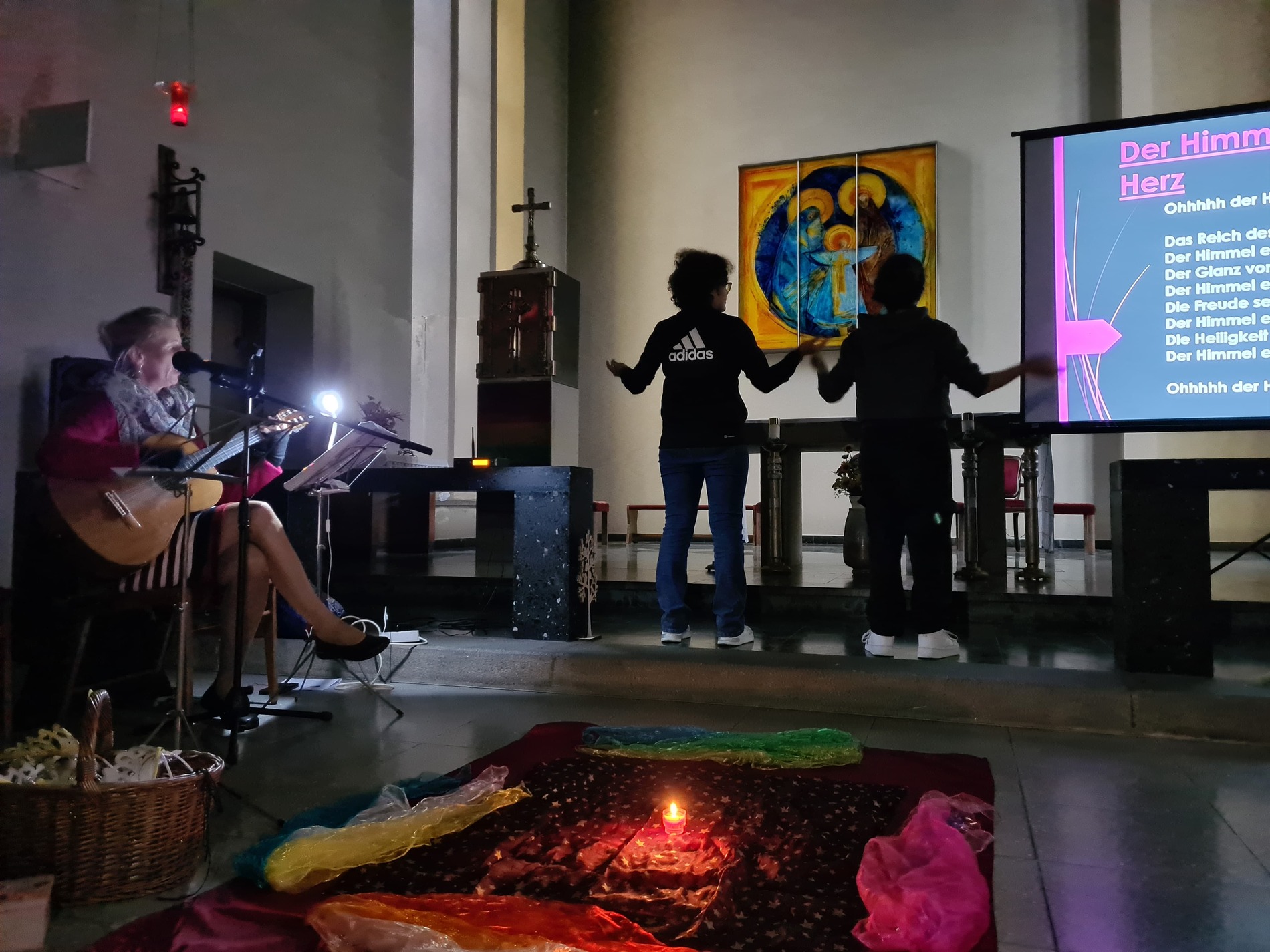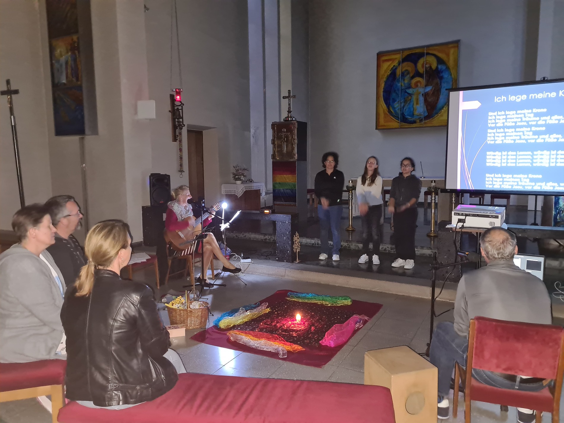 Nach der Sommerpause fand heute, wie an jedem zweiten Donnerstag, in der Pfarrkirche Kematen ein stimmungsvoller musikalischer Lobpreis bei Kerzenlicht statt. Gemeinsam mit den Kindern, die einige Lieder mit Bewegungen begleiteten, wurde in der dunklen Kirche gesungen und die Atmosphäre durch besinnliche Texte bereichert. Es war ein besonderer Abend, die das Gefühl der Gemeinschaft stärkte und allen Teilnehmern eine tiefe spirituelle Erfahrung ermöglichte.