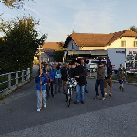 Am Sonntagmorgen, den 23. September, machten sich zwei Pilgergruppen – eine aus Kematen und eine aus Gleiß – auf den Weg zur Fußwallfahrt auf den Sonntagberg. Nach kurzer Wegstrecke trafen sich beide Gruppen, und nach einem gemeinsamen Gebet setzten sie ihren Weg fort, begleitet von der Morgensonne. Mit dem Kreuz voran, pilgerten sie zur Basilika auf dem Sonntagberg.