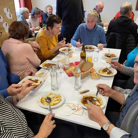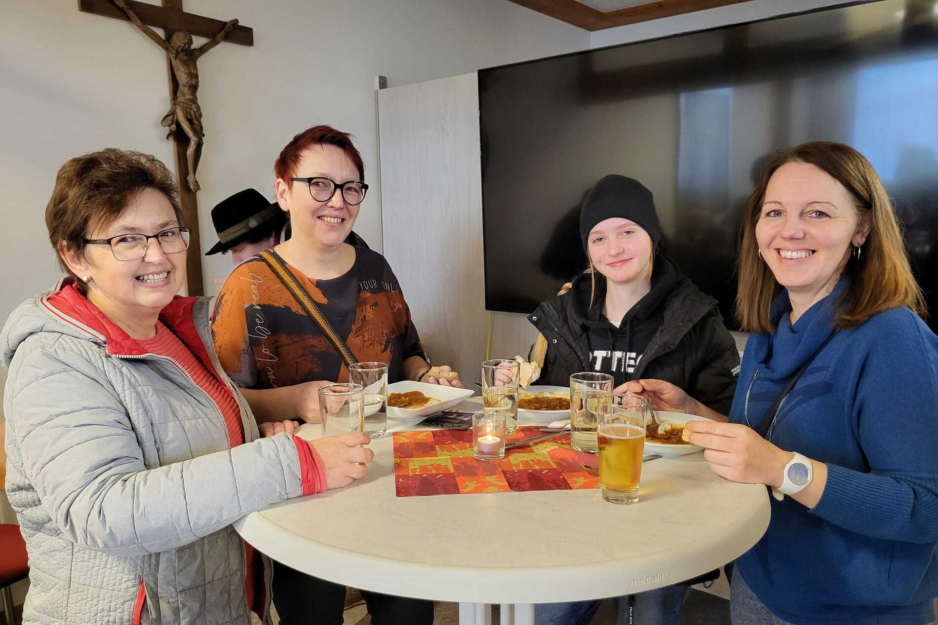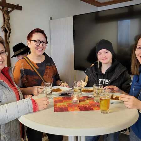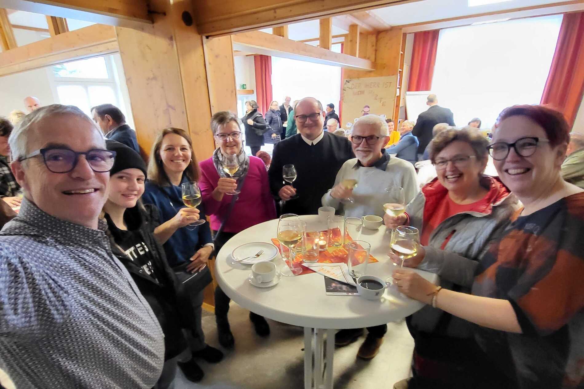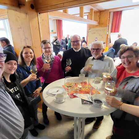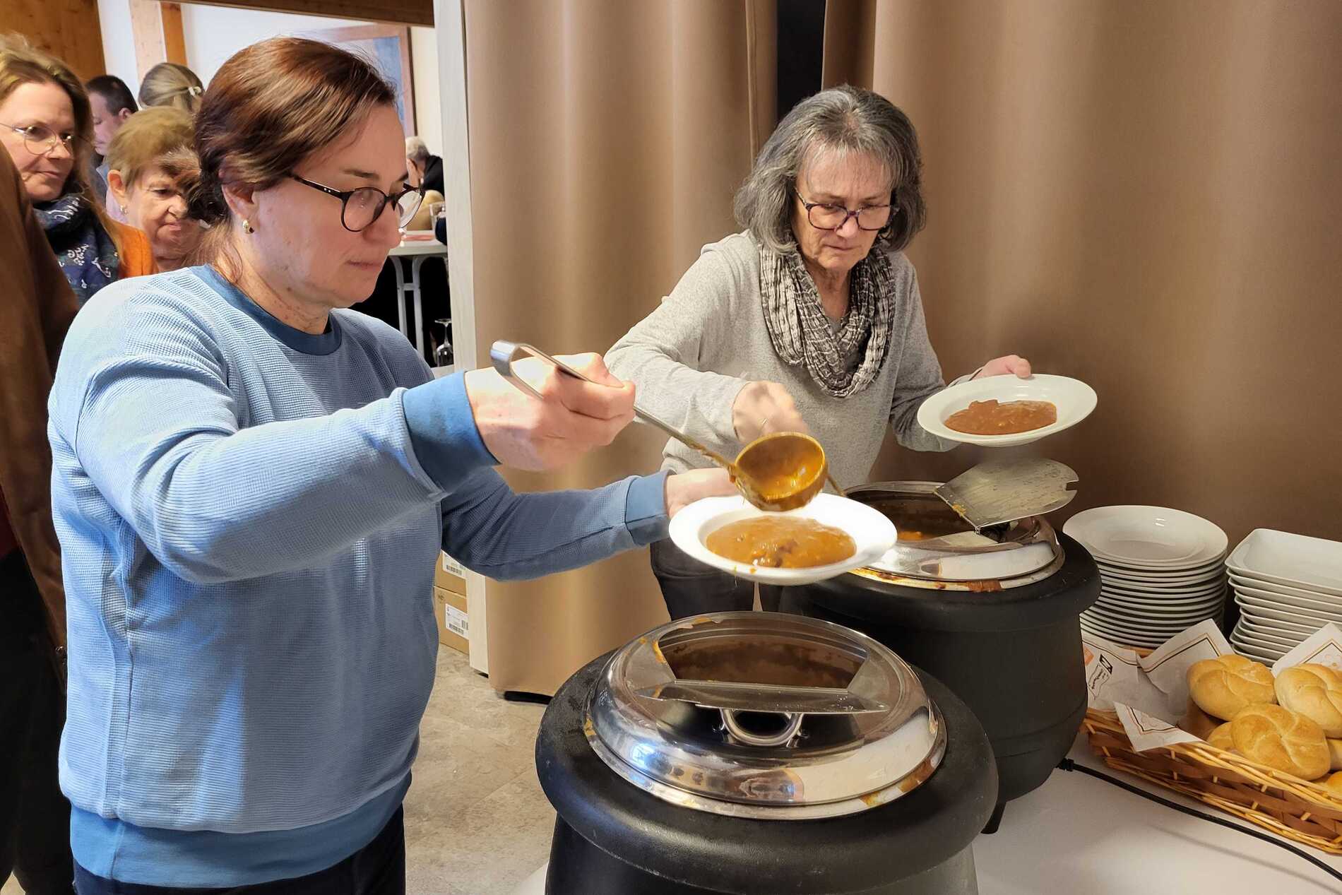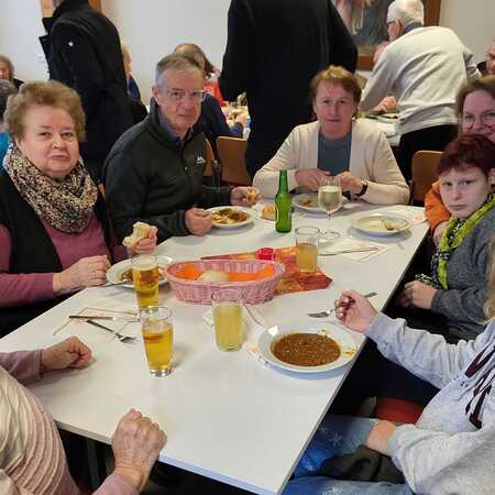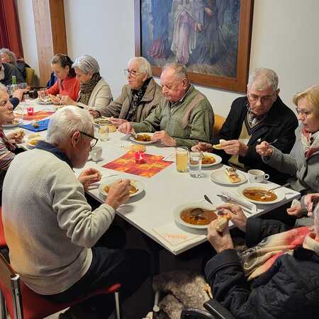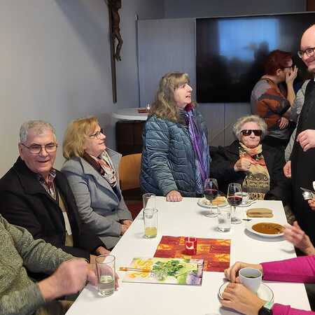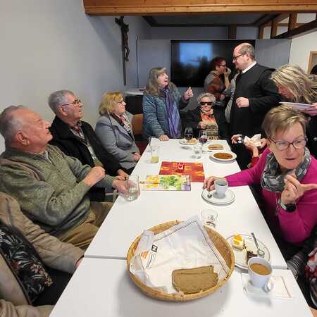 Nach dem Gottesdienst wurde zur Agape im Pfarrsaal geladen. Bei Gulasch, einer Auswahl an Getränken – von Wein und Bier bis hin zu Säften und Kaffee – sowie köstlichen Mehlspeisen kamen die Besucher miteinander ins Gespräch und genossen das gesellige Beisammensein.