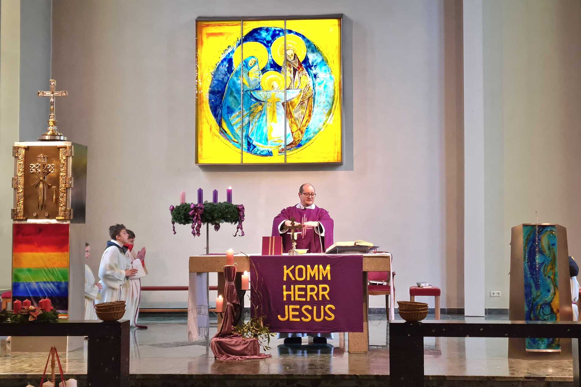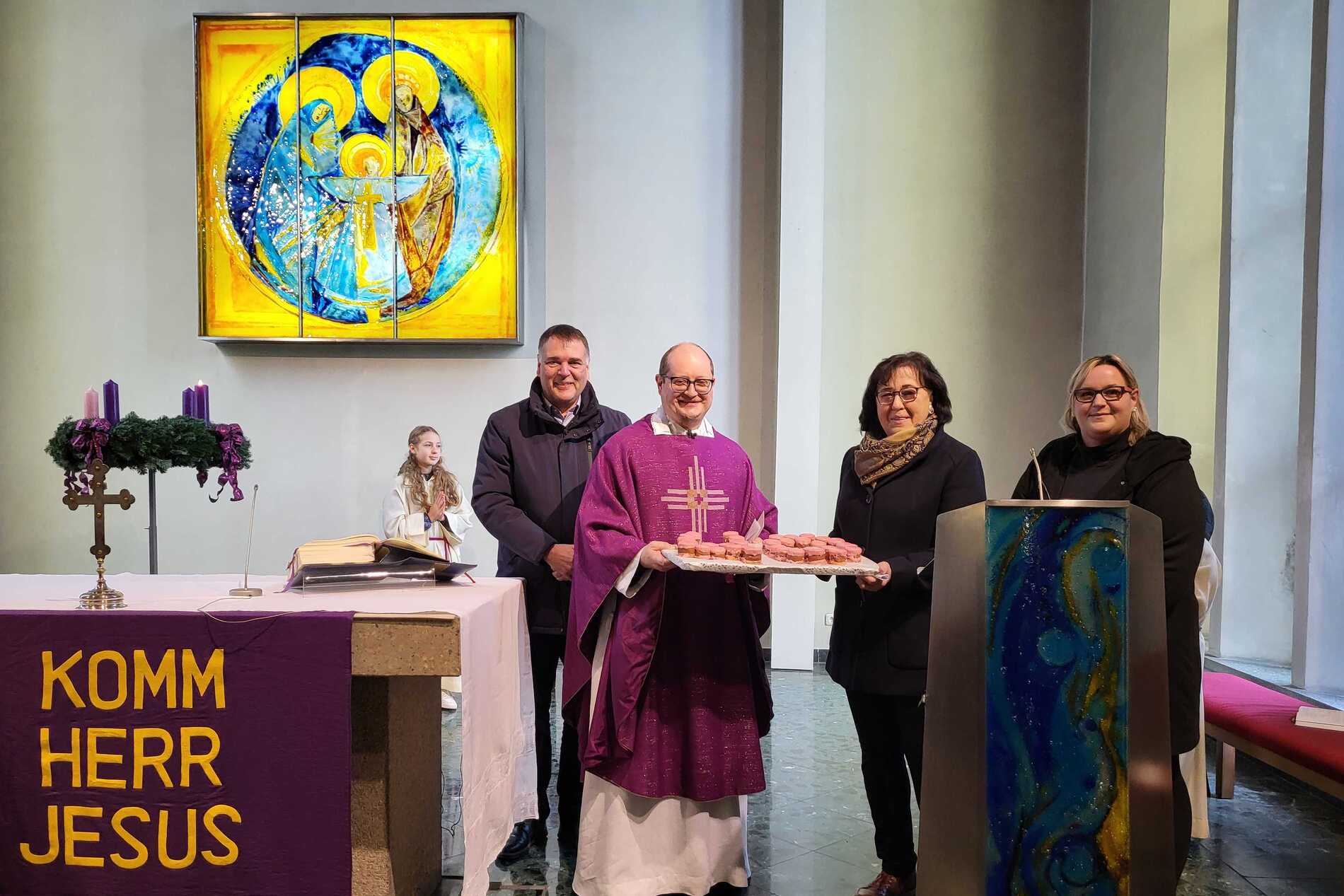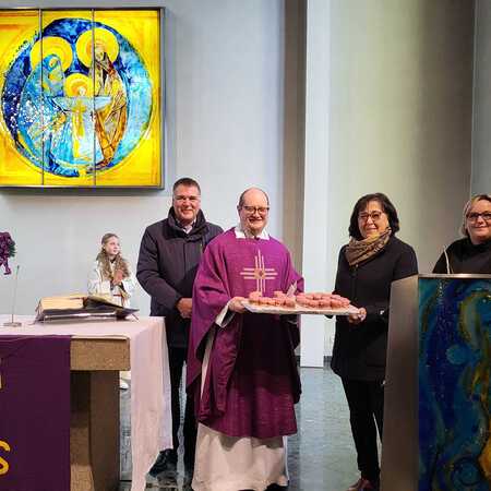 Am heutigen ersten Adventssonntag fand in unserer Pfarrkirche ein besonders feierlicher Gottesdienst statt, bei dem eine Überraschungsfeier zu Ehren des 40. Geburtstags unseres Pfarrers P. Vitus integriert war. Organisiert wurde diese gelungene Feier vom Pfarrgemeinderat, der sich große Mühe gab, diesen Tag zu etwas ganz Besonderem zu machen.