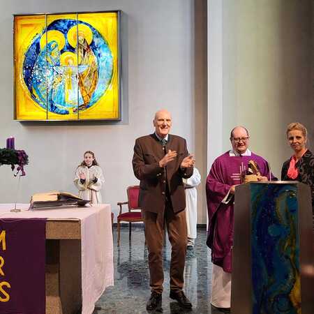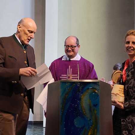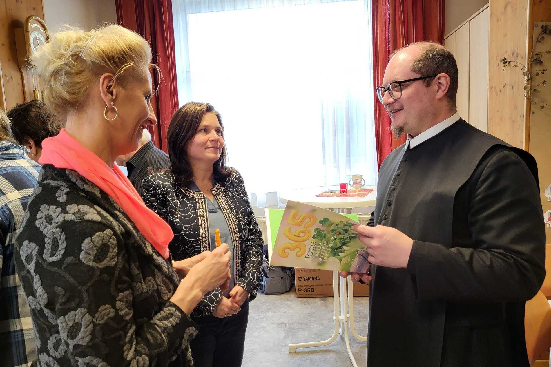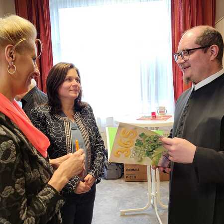 Sichtlich gerührt bedankte sich P. Vitus bei allen Gratulanten für die gelungene Überraschung und würdigte die großartige Zusammenarbeit und Unterstützung der Pfarrmitglieder.