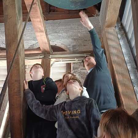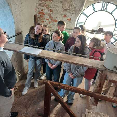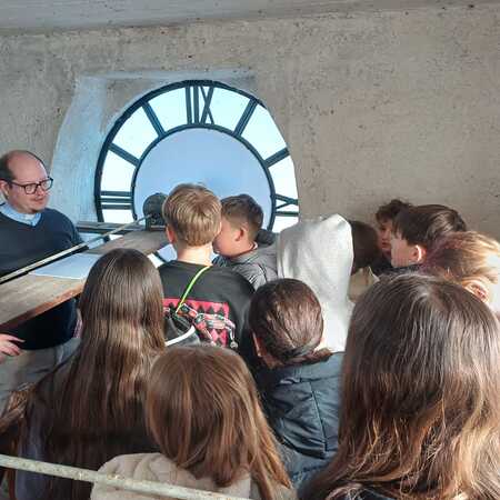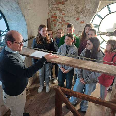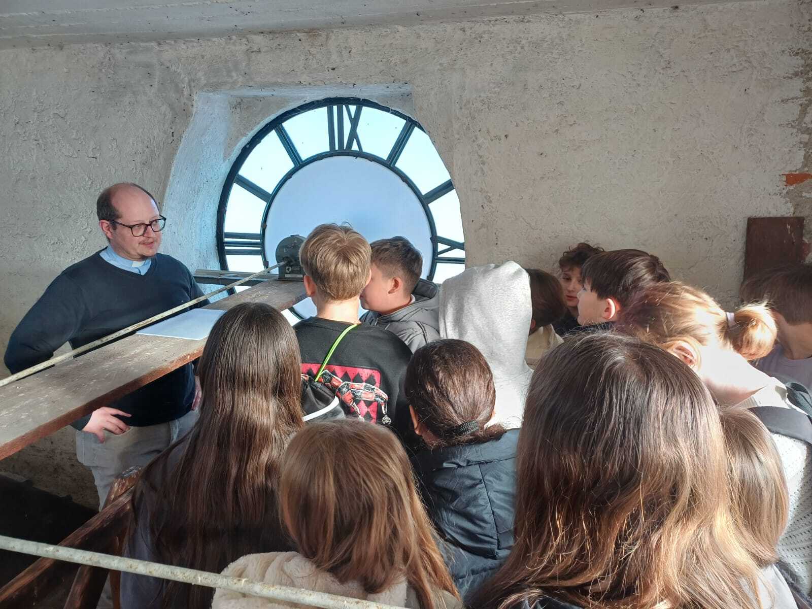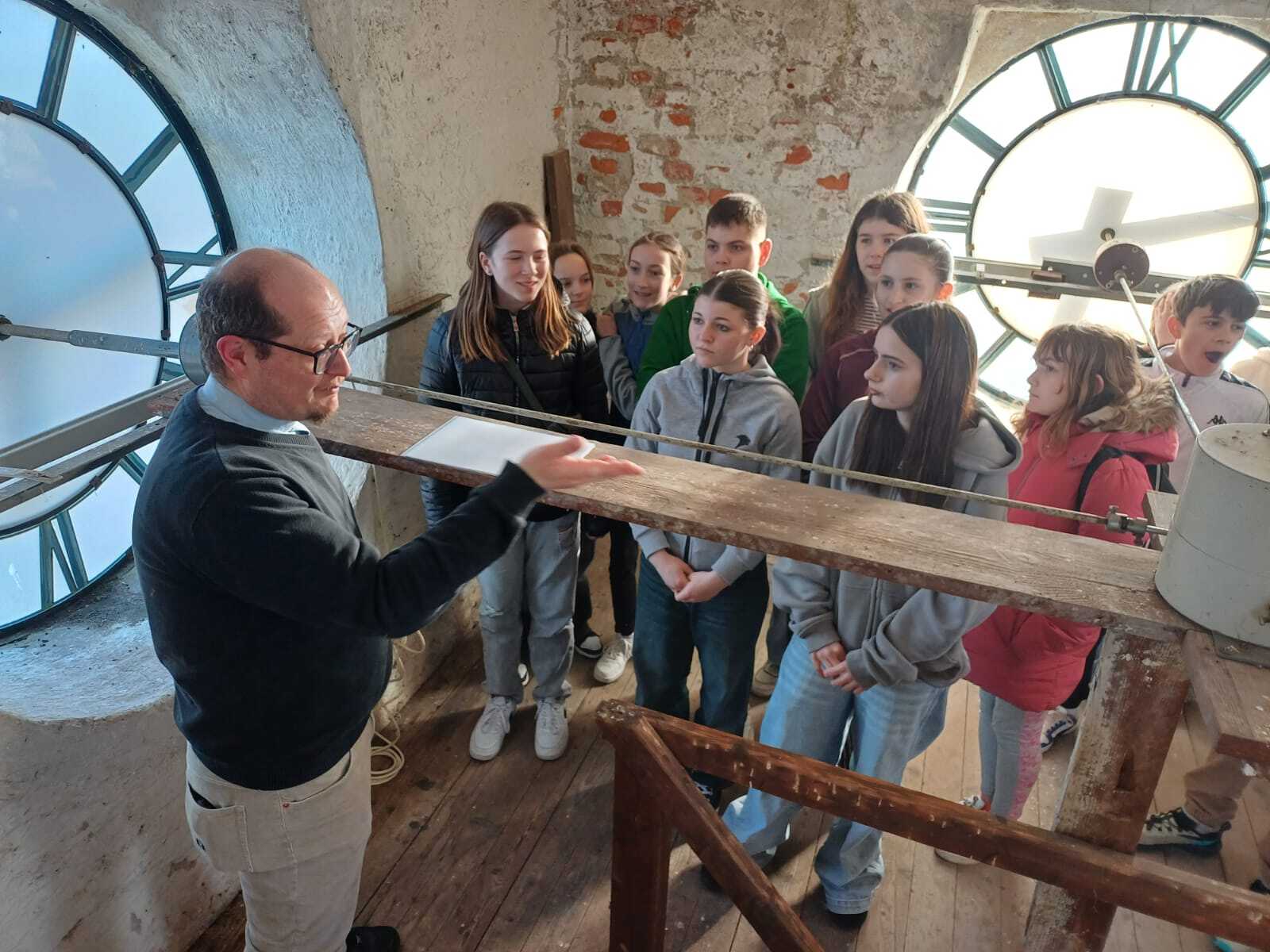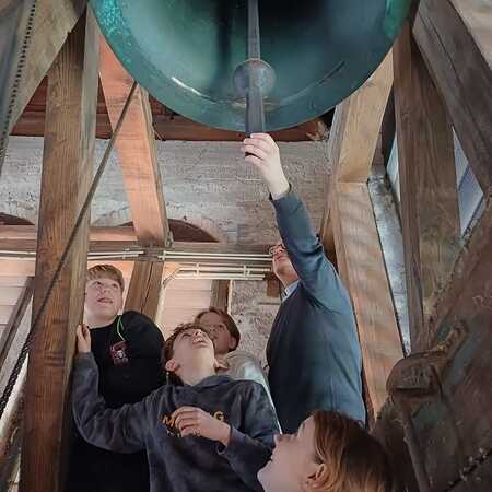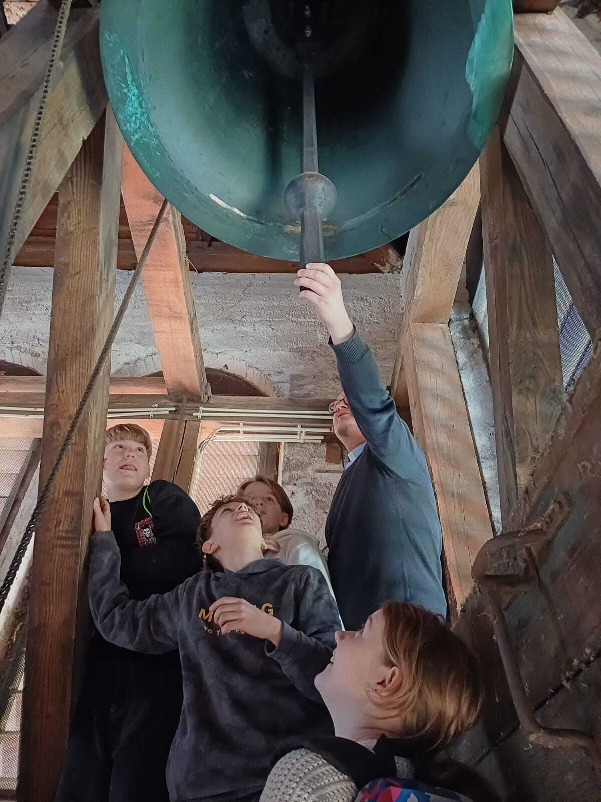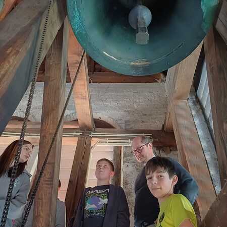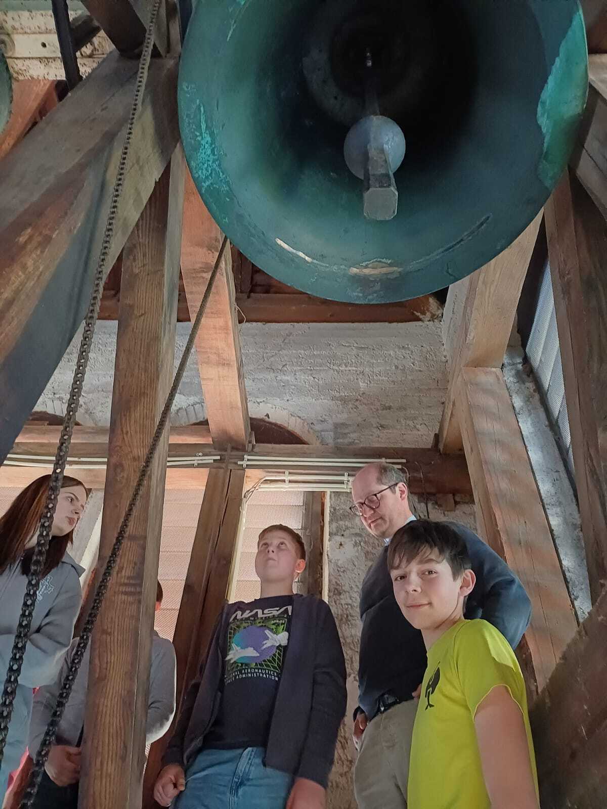 In einem spannenden Workshop erhielten die Firmlinge der Pfarre einen besonderen Einblick in die Geschichte ihrer Kirche. Pater Vitus führte die Jugendlichen auf den Kirchturm und erklärte ihnen die Bedeutung und Funktionsweise der imposanten Glocken. Dabei wurde er tatkräftig von Josef Höfinger unterstützt.