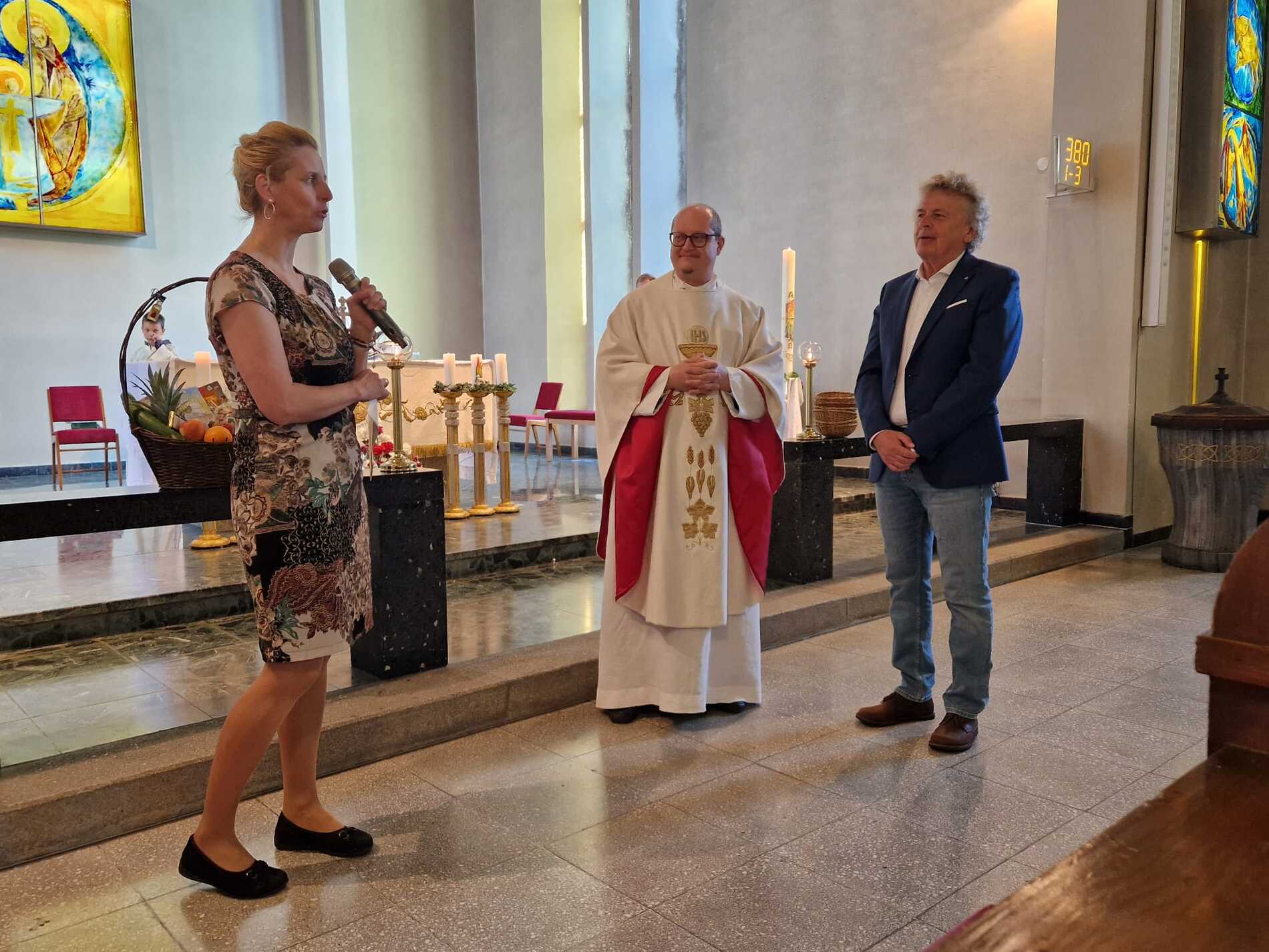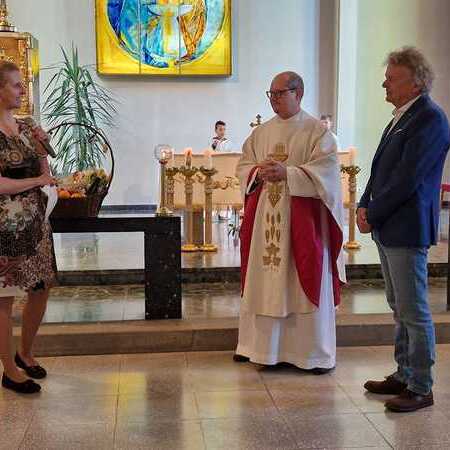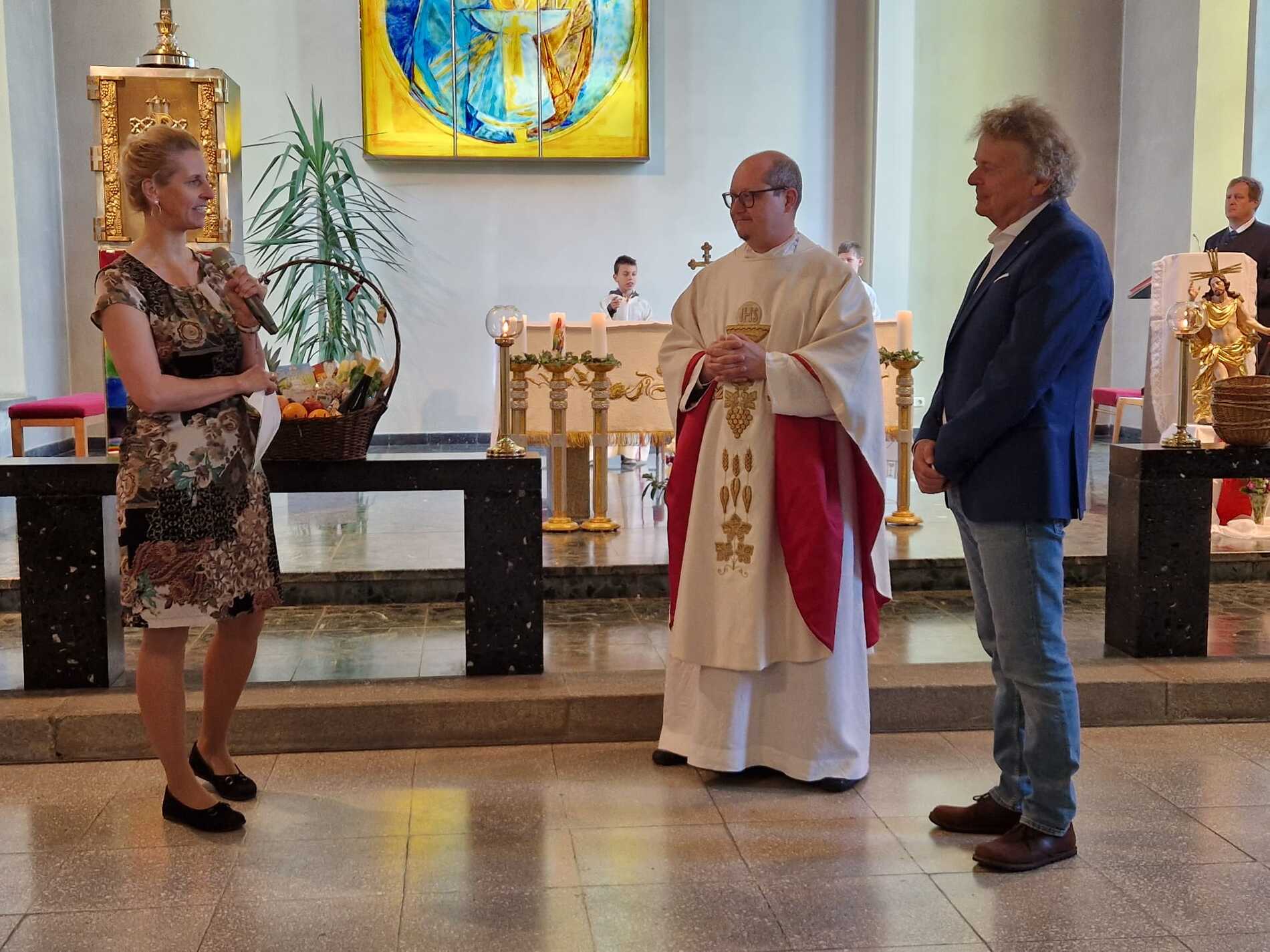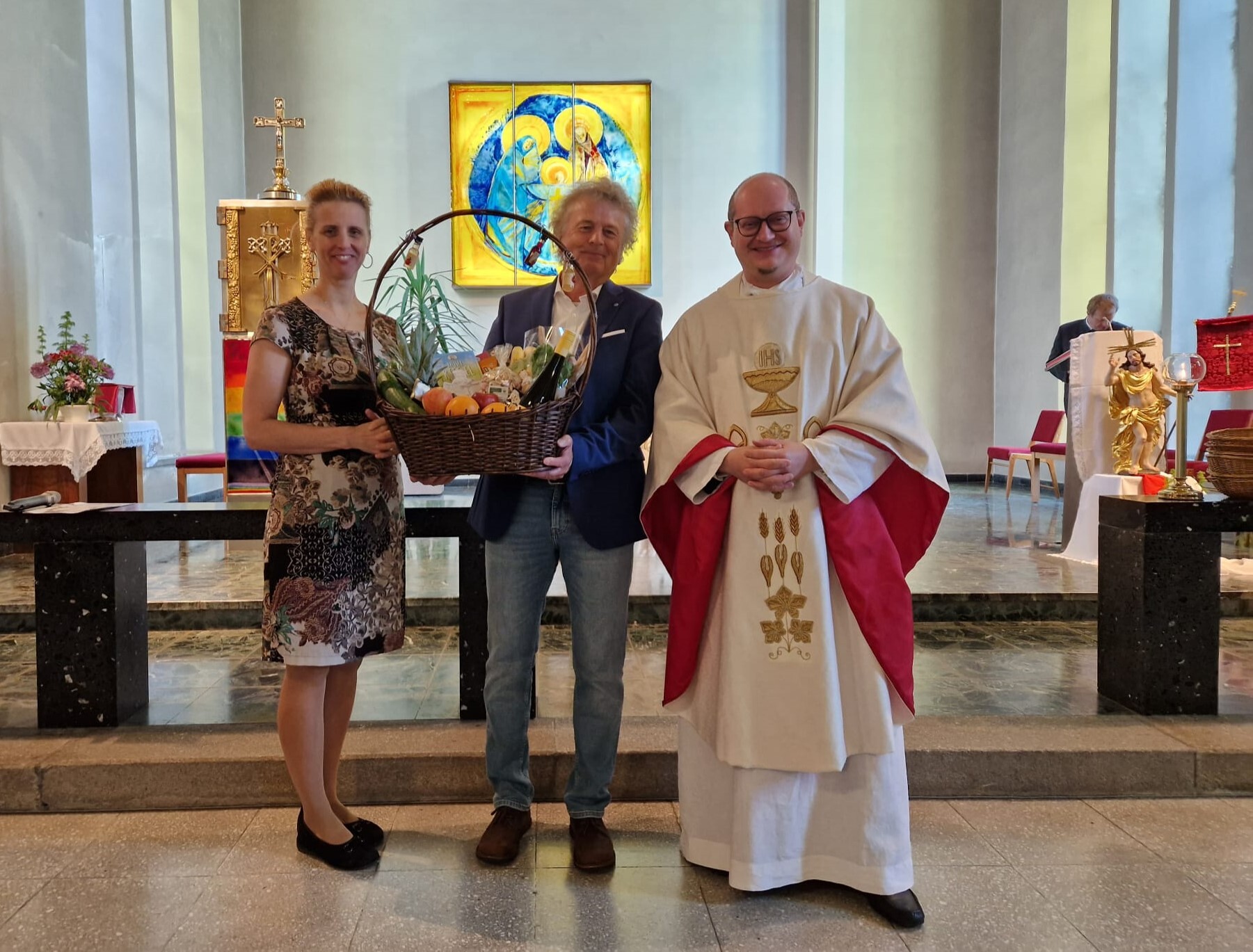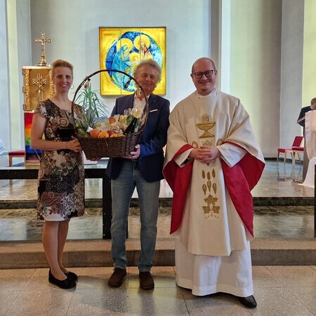 Im Anschluss an die Heilige Messe gratulierten P. Vitus und Monika Hinterdorfer herzlich Herrn Dietmar Traxler zum 30-jährigen Jubiläum des Pfarrbriefs.