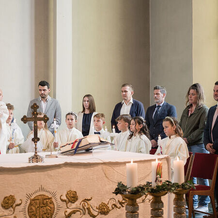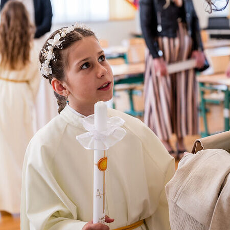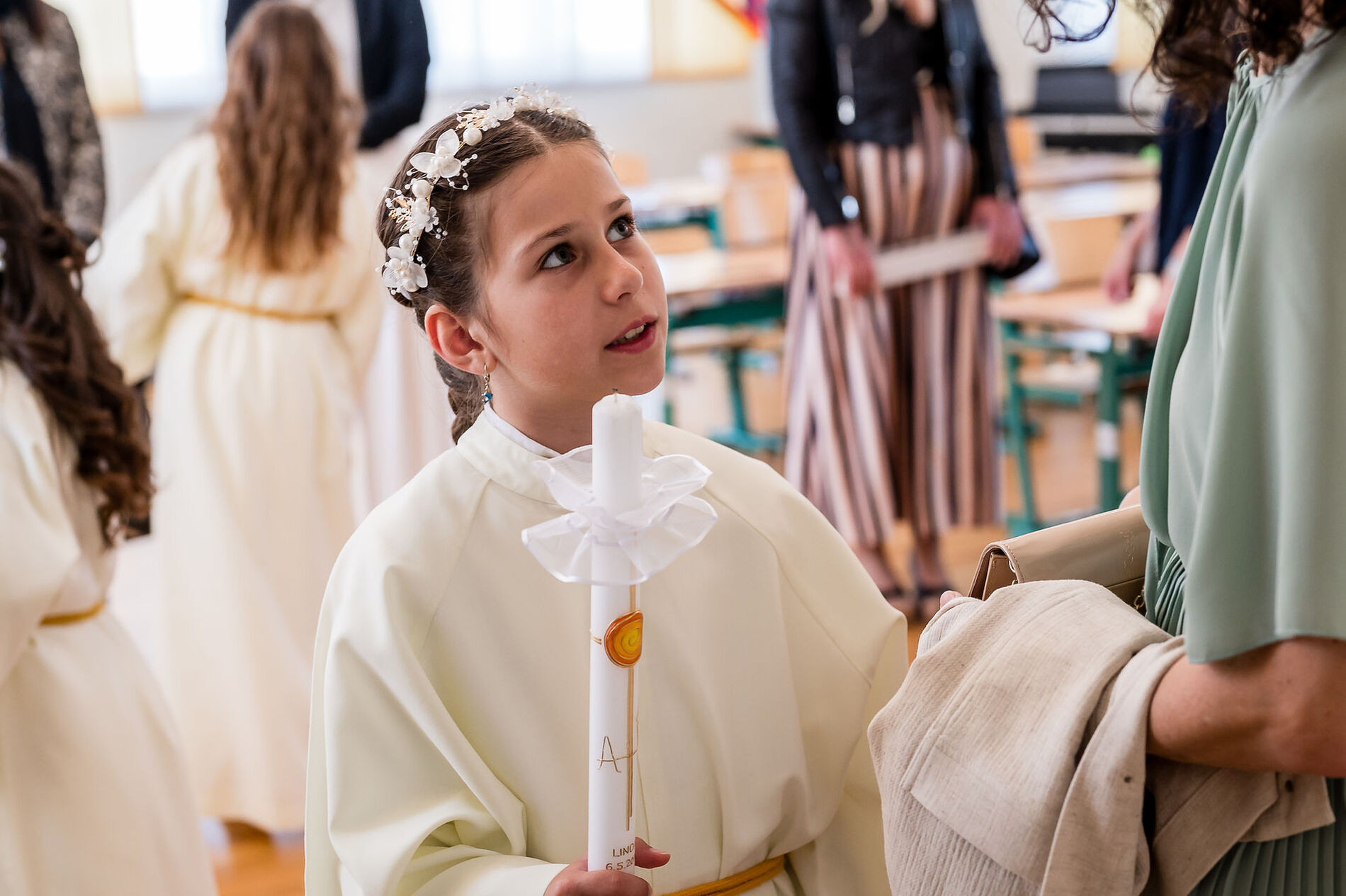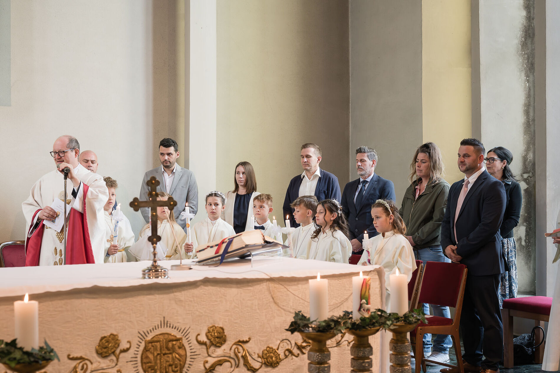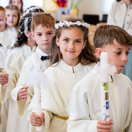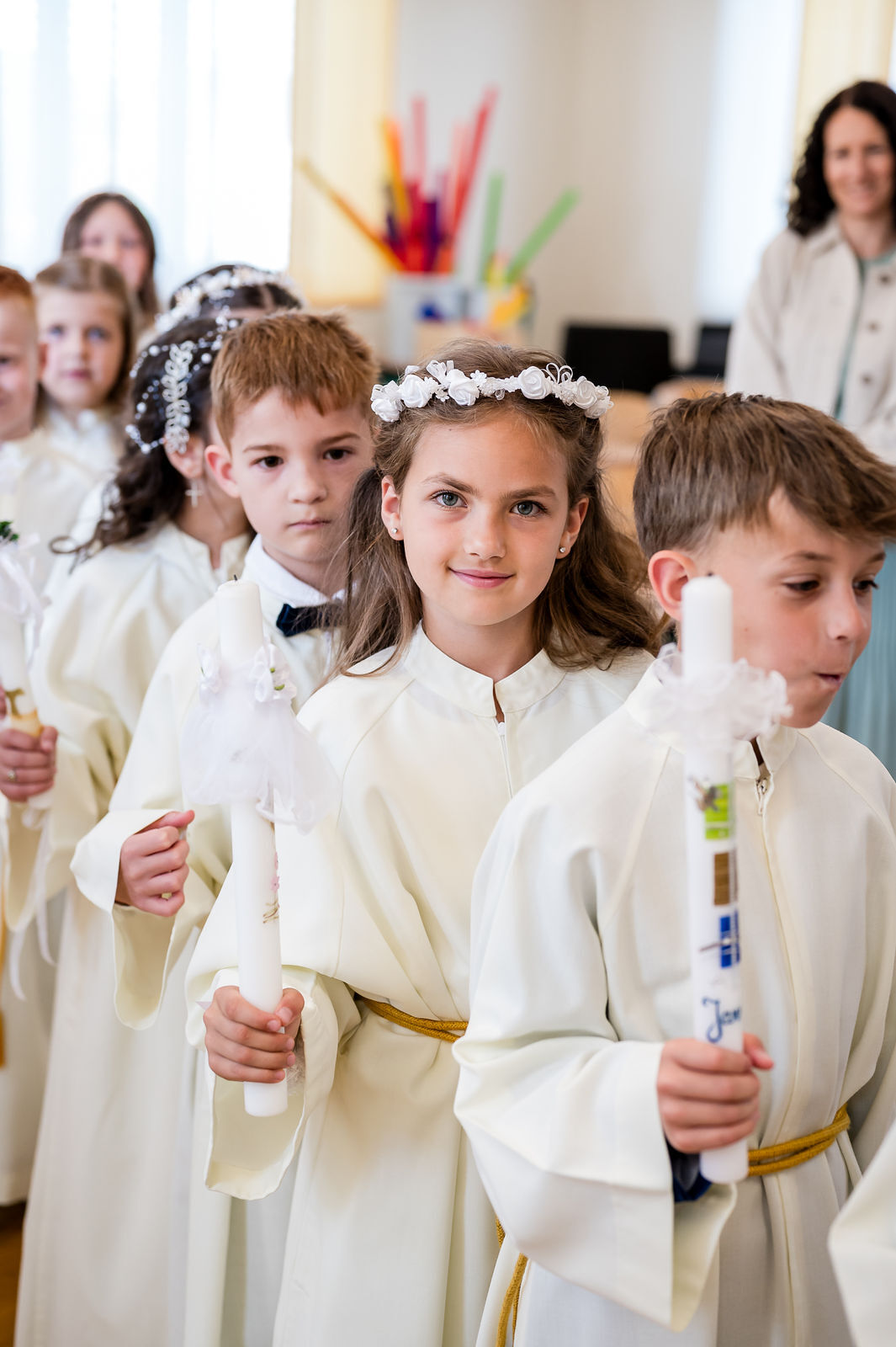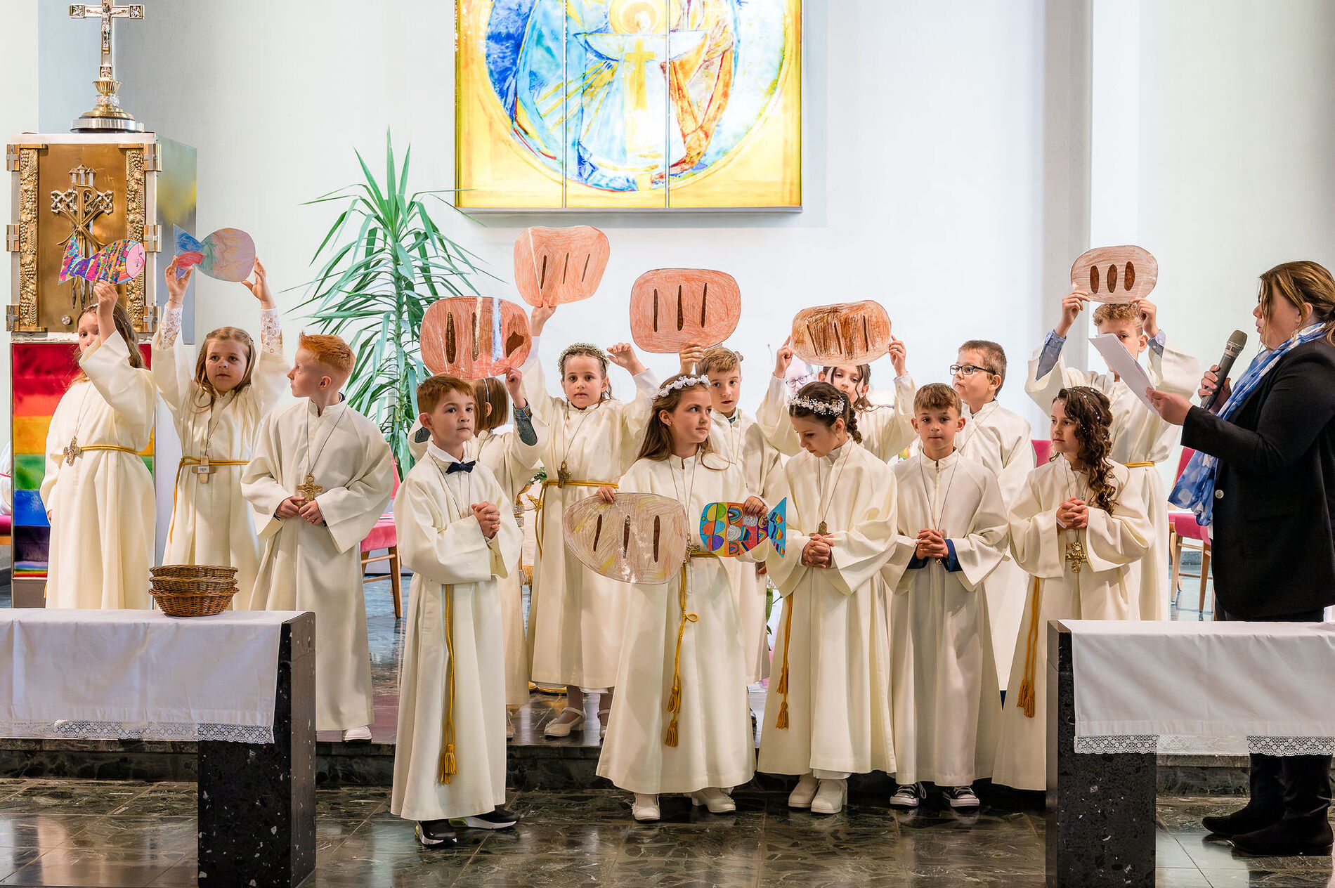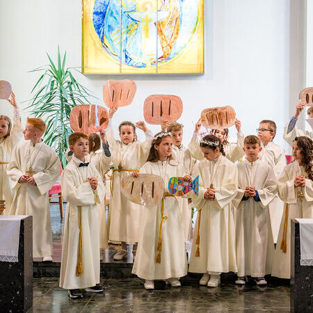 Am Sonntag, den 25. Mai 2025, feierten die Schülerinnen und Schüler der VS Kematen ihre Erstkommunion. Nach vielen Monaten der Vorbereitung, war es endlich so weit, begleitet von rhythmischen Liedern bekamen die Erstkommunionkinder zum ersten Mal das Heilige Brot. Ganz besonders beeindruckt, waren alle von dem liebevoll gestalteten Rollenspiel, mit den bunt verzierten Fischen, bei dem jede Schülerin und jeder Schüler aktiv die Messe mitgestalten konnte. Es war ein wunderbares Fest, mit vielen berührenden Momenten, die allen noch lange in Erinnerung bleiben werden.