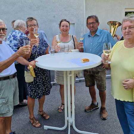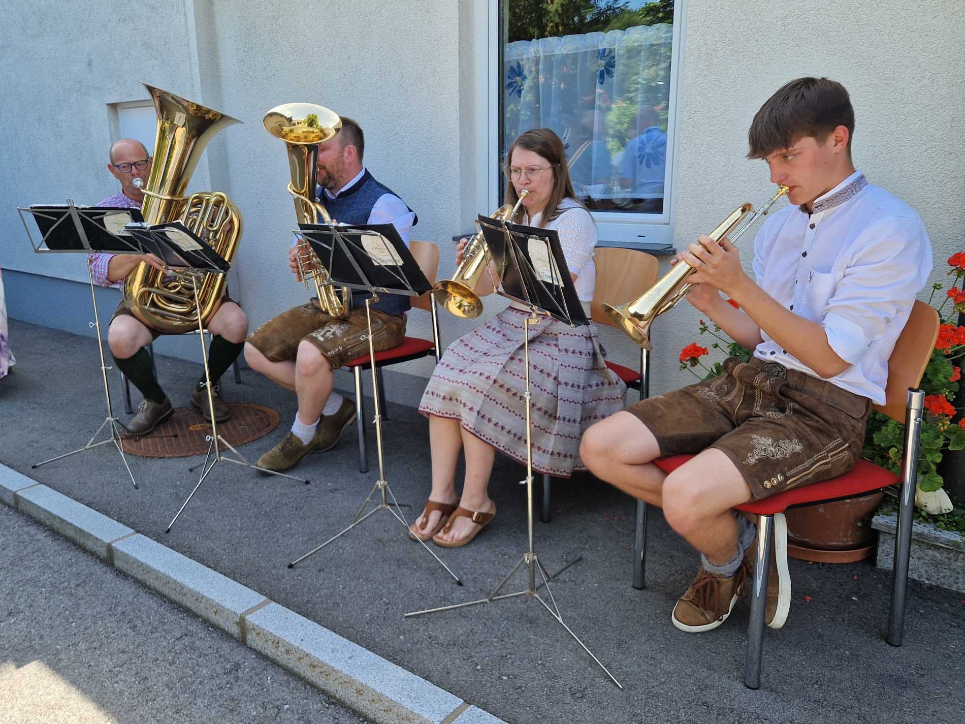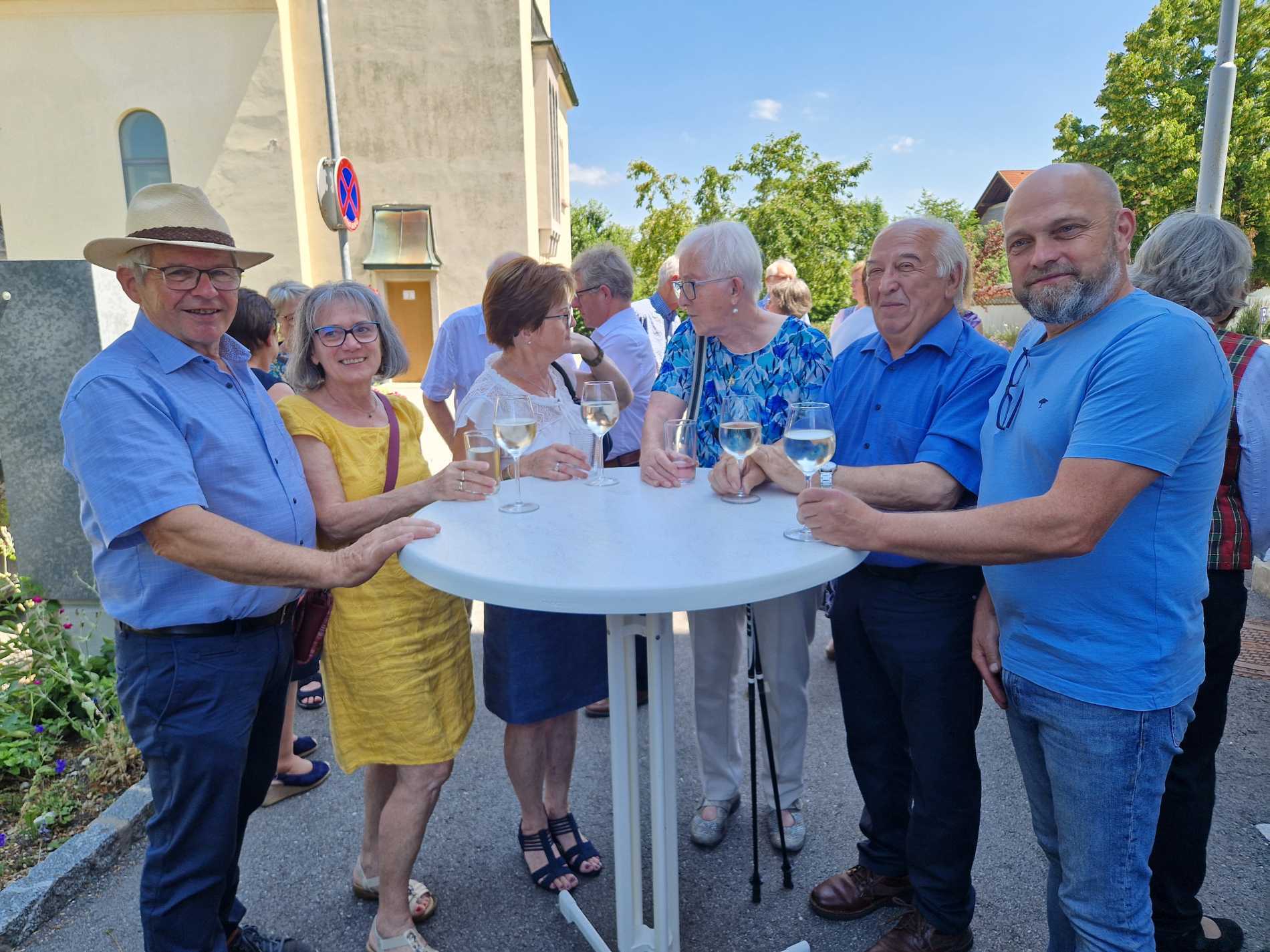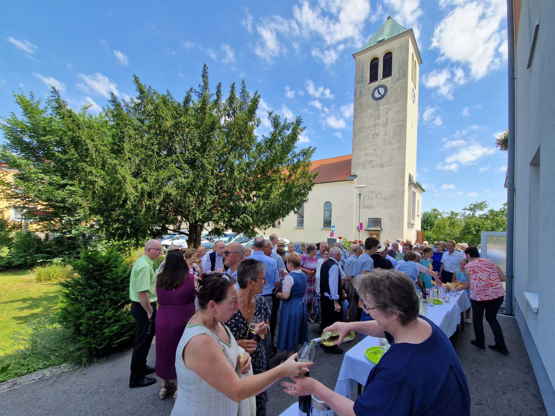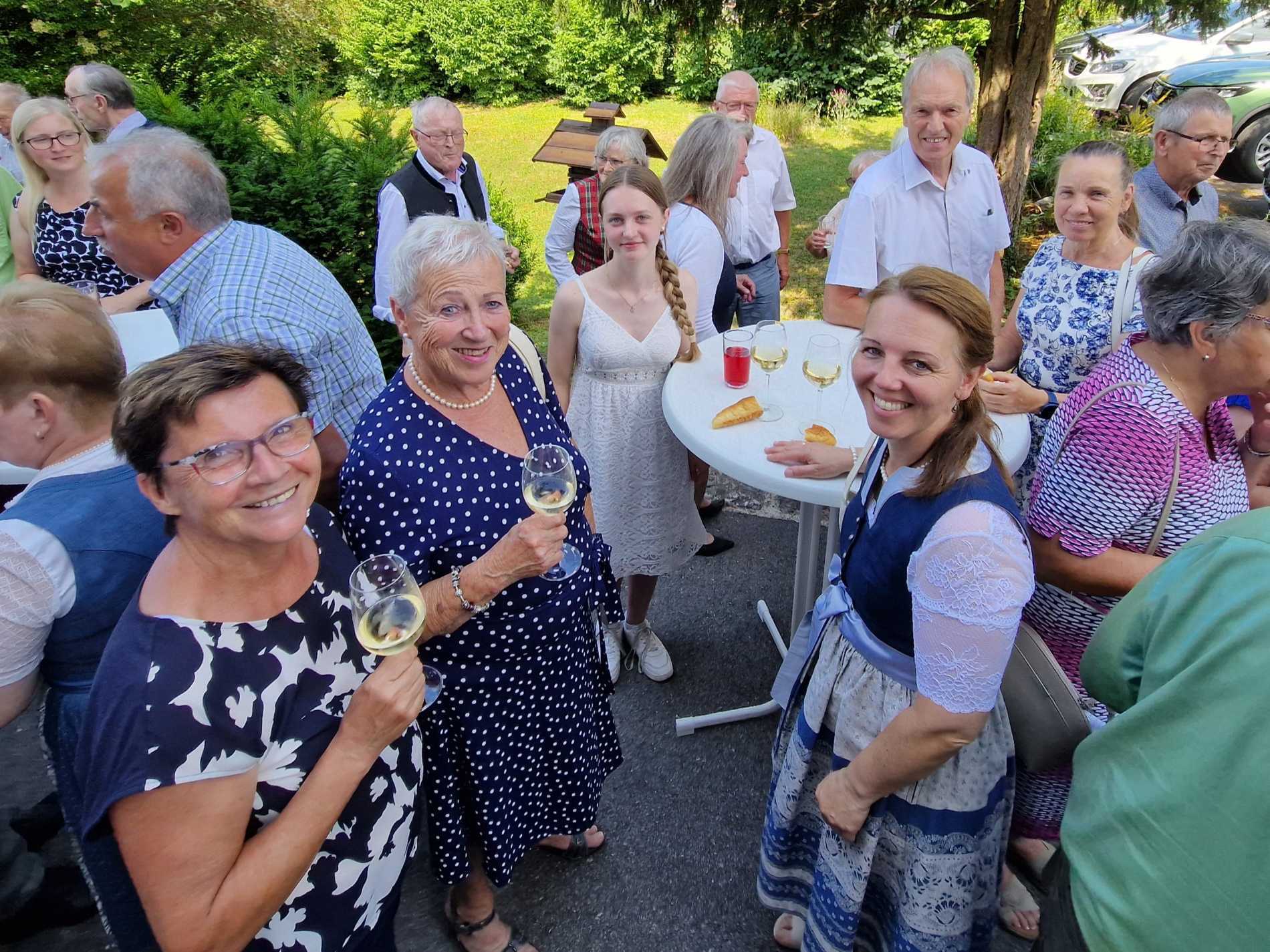 Nach der Messe lud der Jubilar zu einem gemütlichen Empfang, bei dem Briochkipferl, Wein und Saft gereicht wurden. Das Bläserensemble umrahmte die Veranstaltung musikalisch und sorgte für eine festliche Atmosphäre.