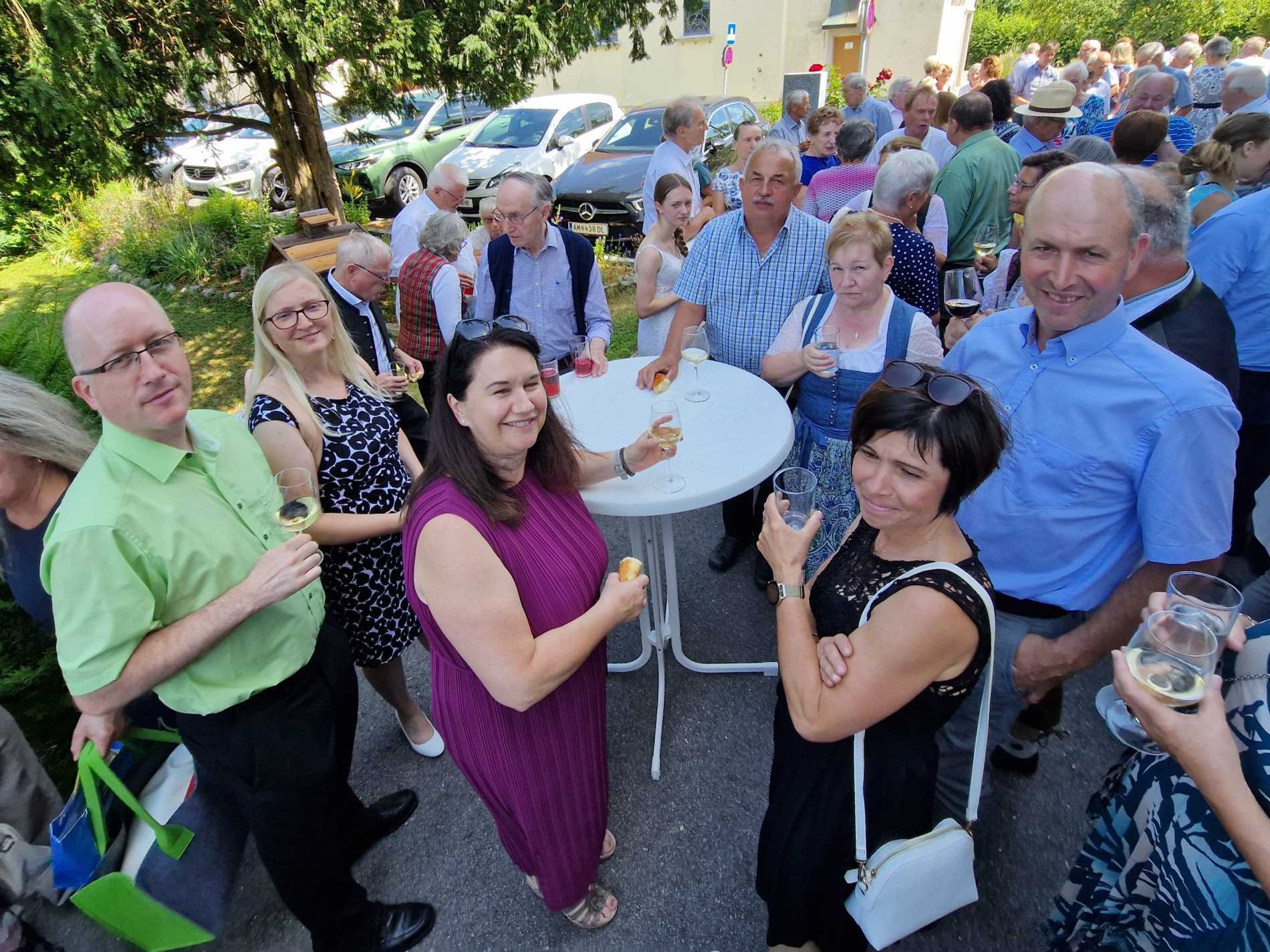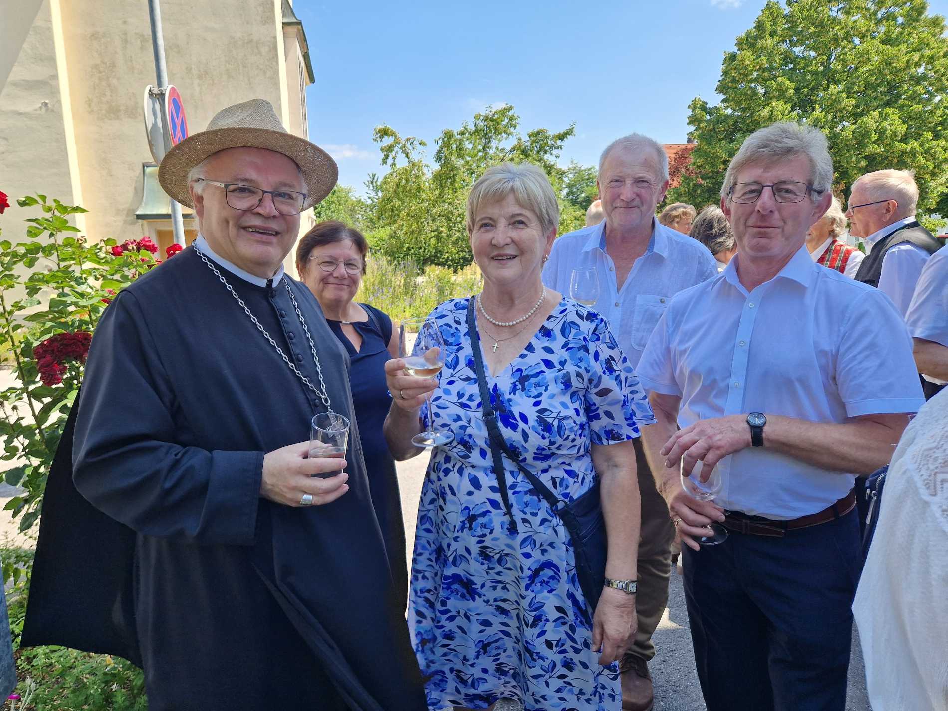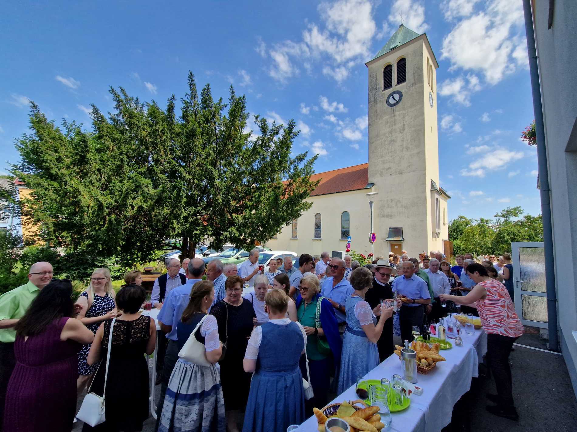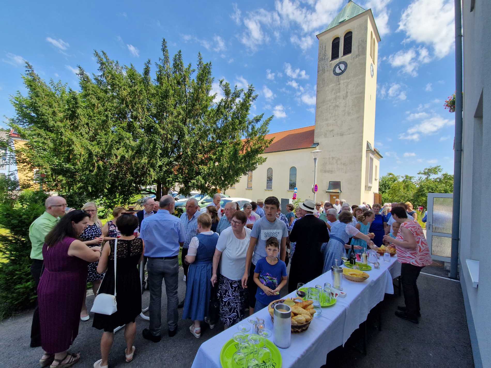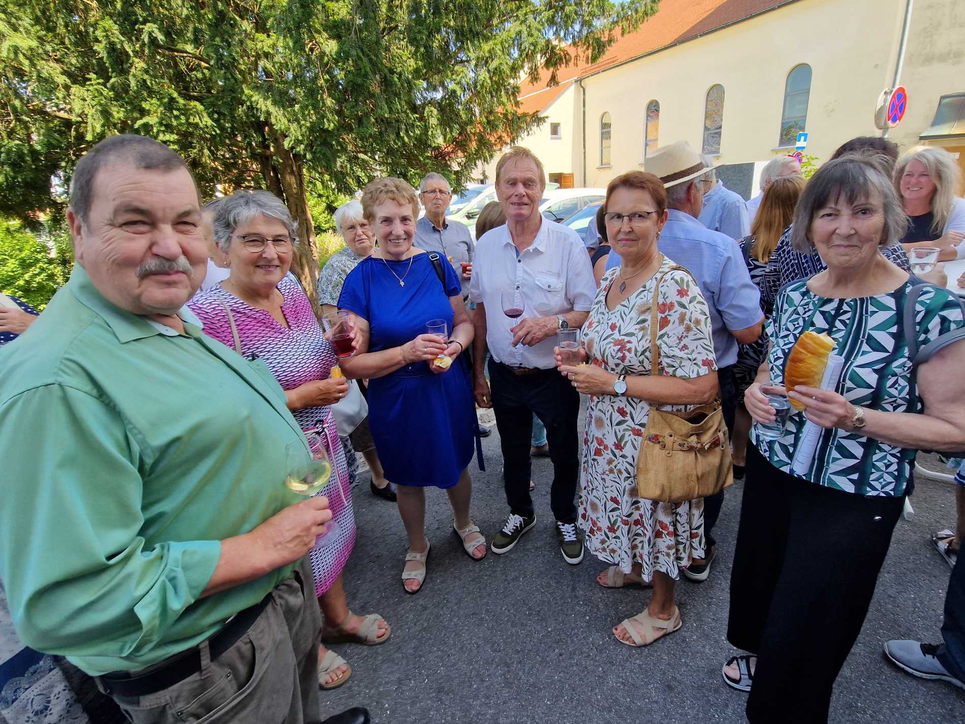 Nach der Messe lud der Jubilar zu einem gemütlichen Empfang, bei dem Briochkipferl, Wein und Saft gereicht wurden. Das Bläserensemble umrahmte die Veranstaltung musikalisch und sorgte für eine festliche Atmosphäre.