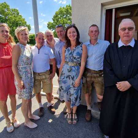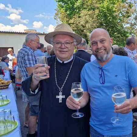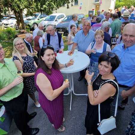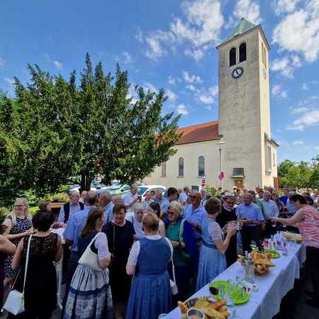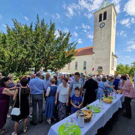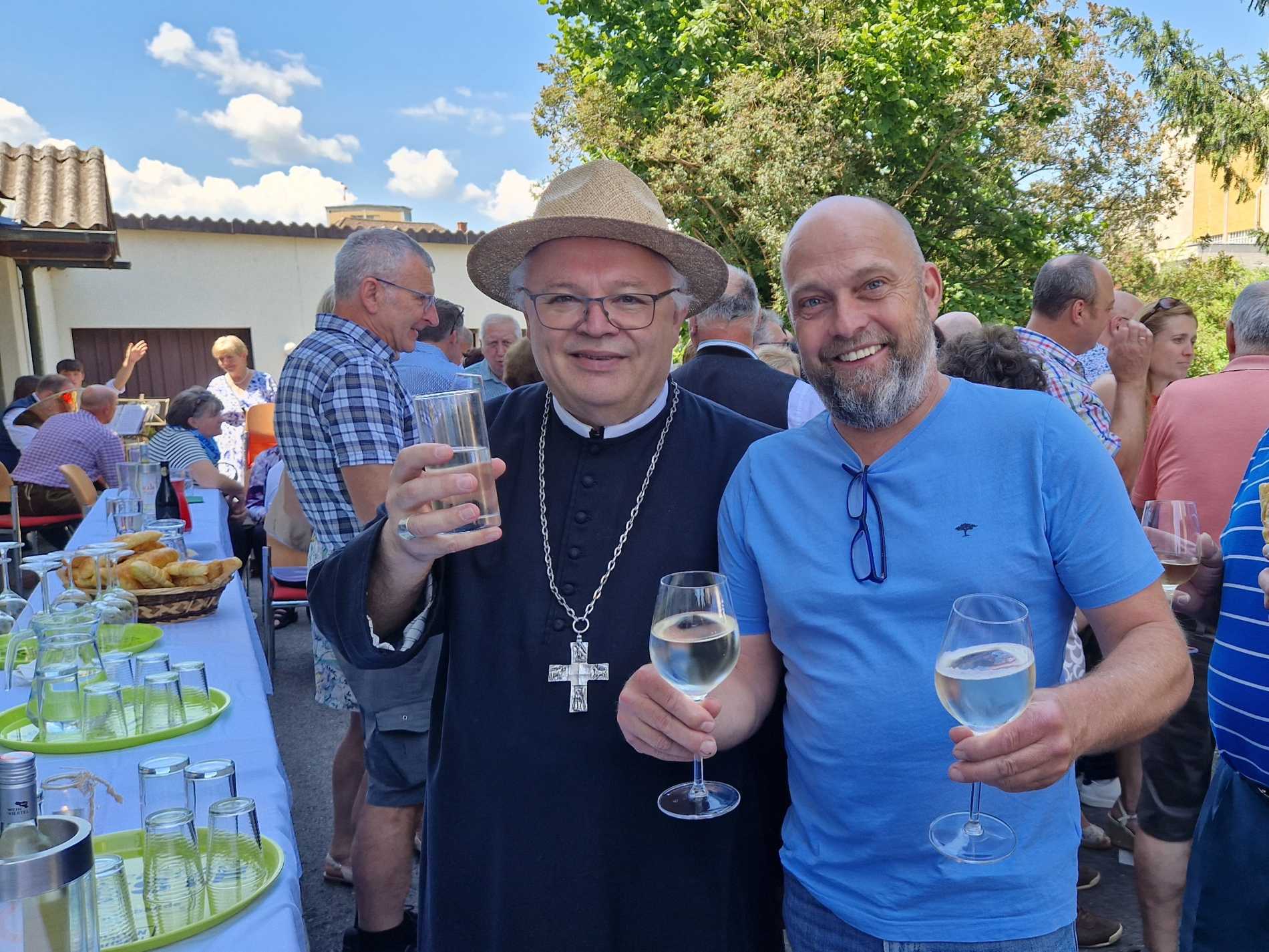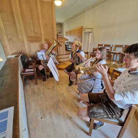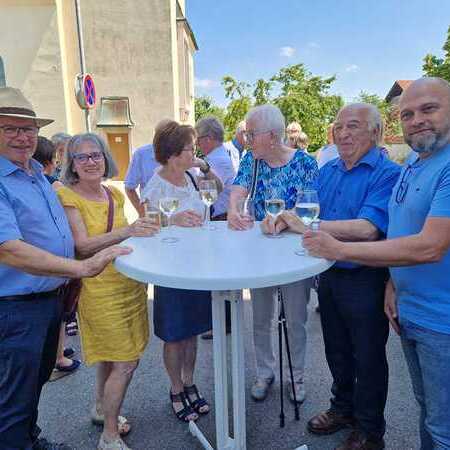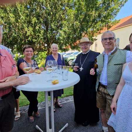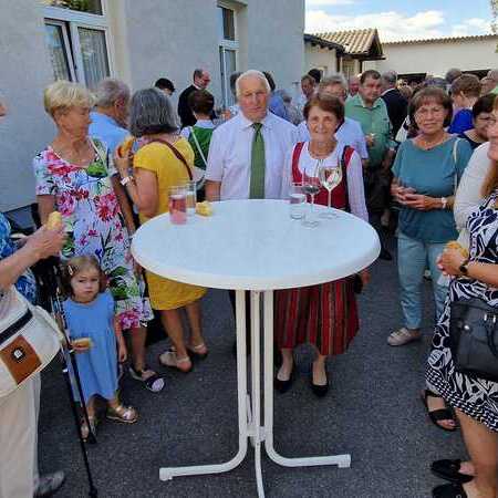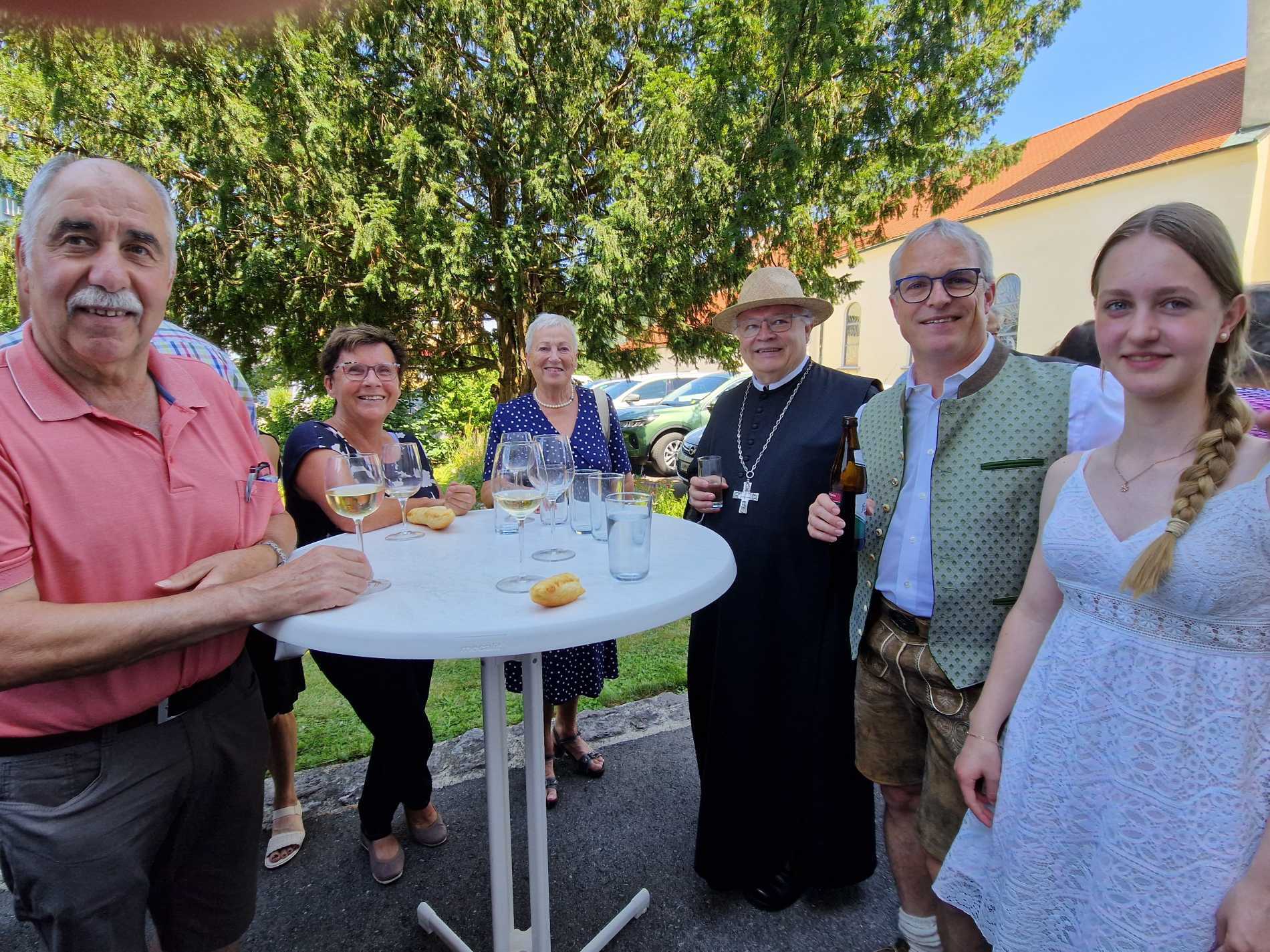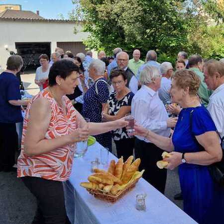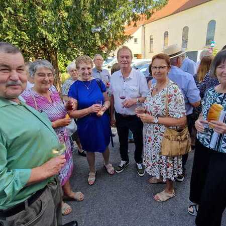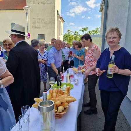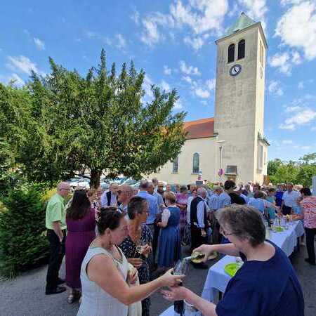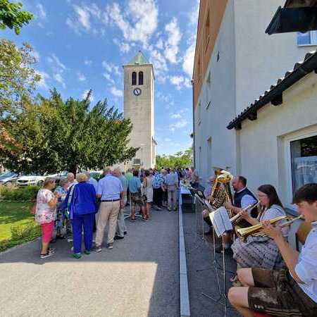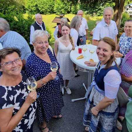 Nach der Messe lud der Jubilar zu einem gemütlichen Empfang, bei dem Briochkipferl, Wein und Saft gereicht wurden. Das Bläserensemble umrahmte die Veranstaltung musikalisch und sorgte für eine festliche Atmosphäre.