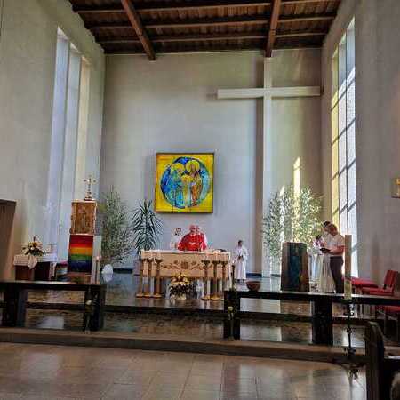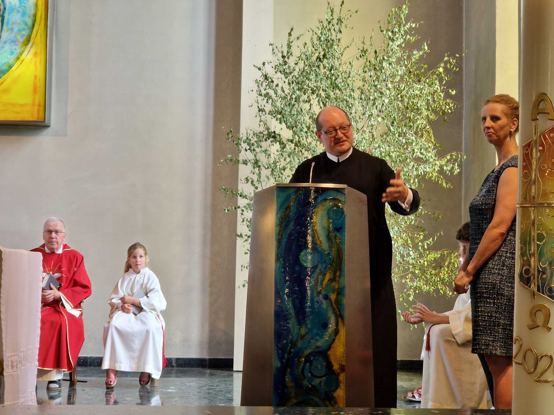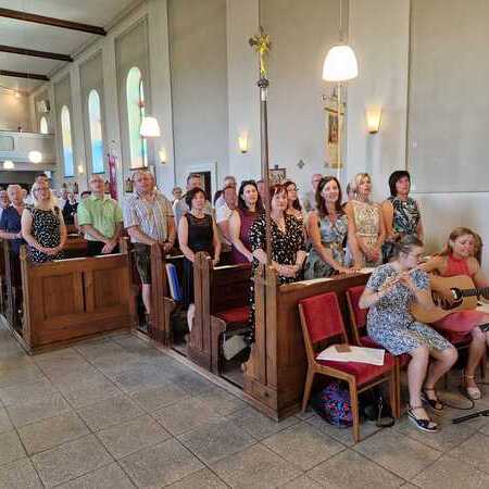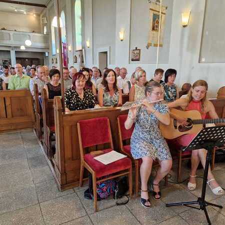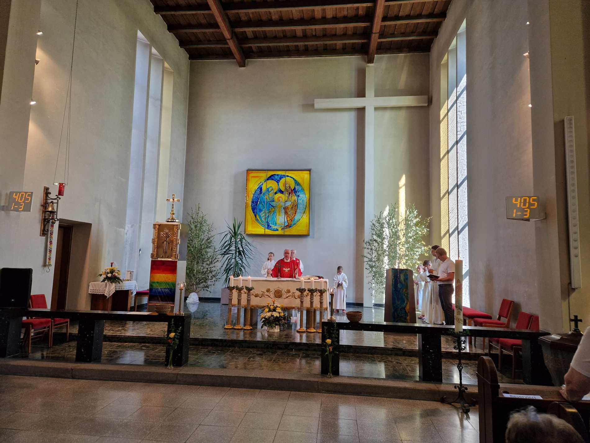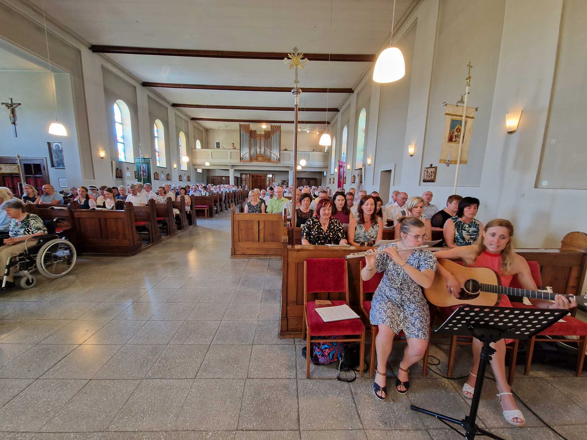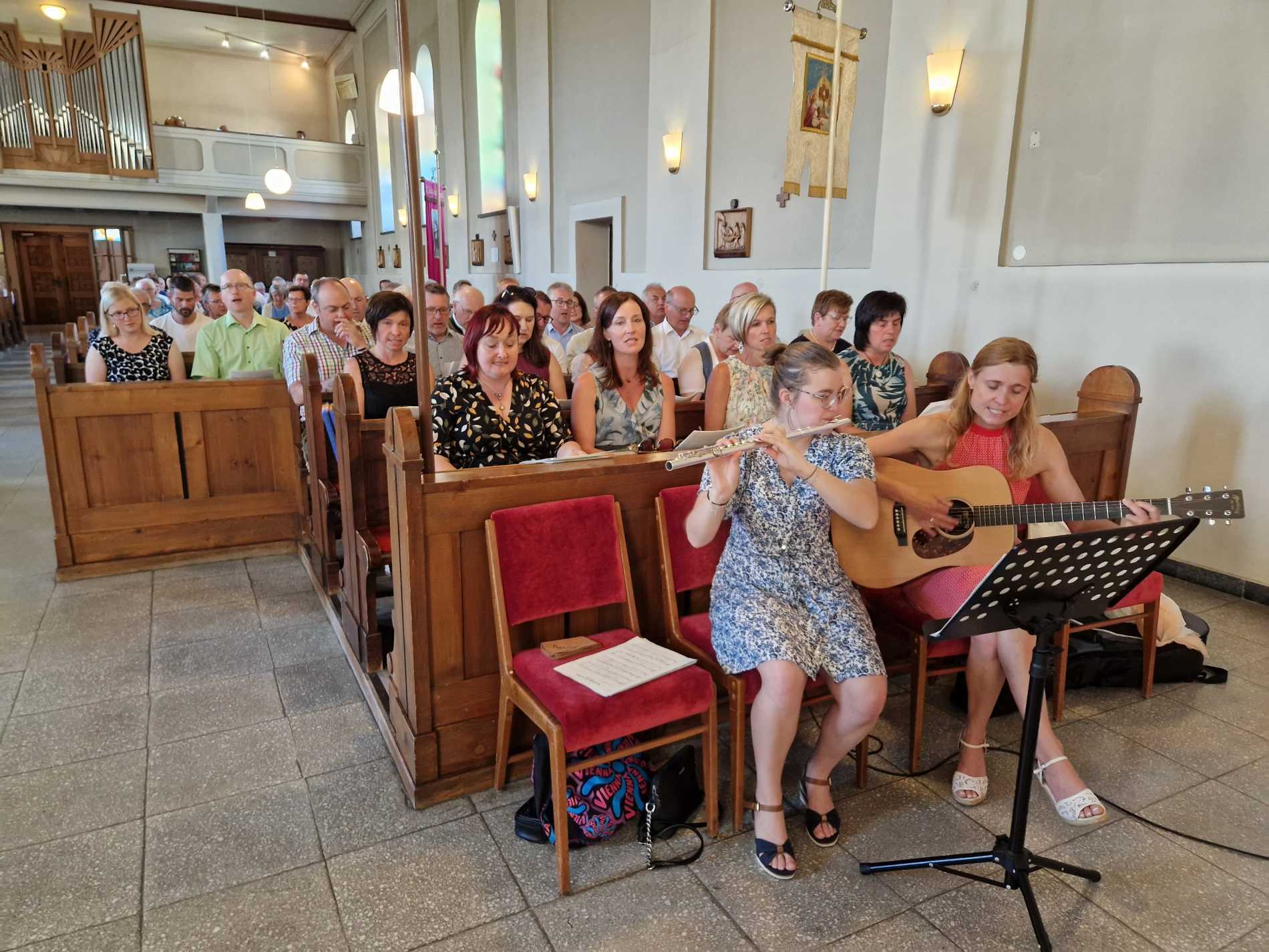 Musikalisch wurde die Messe außerdem mit neuen geistlichen Liedern von P. Severins Verwandten, die mit Gitarre und Querflöte sowie kräftigem Gesang die Feier bereicherten, gestaltet. Besonders beeindruckend war der kraftvolle Gesang beim Vaterunser, der die gesamte Kirche erfüllte und für einen unvergesslichen Moment sorgte.