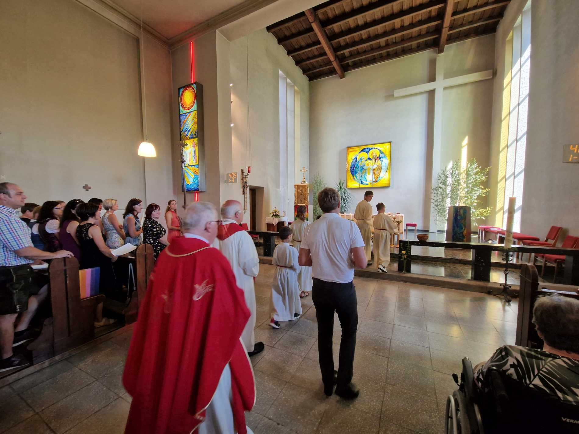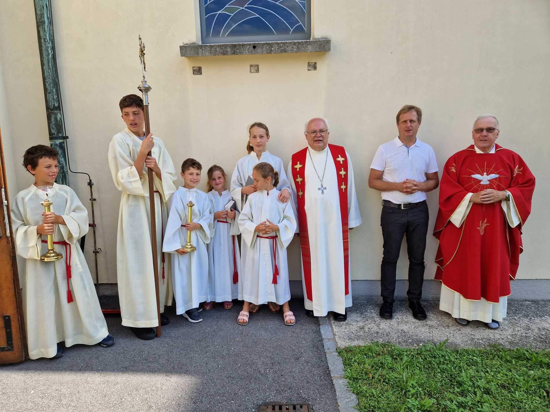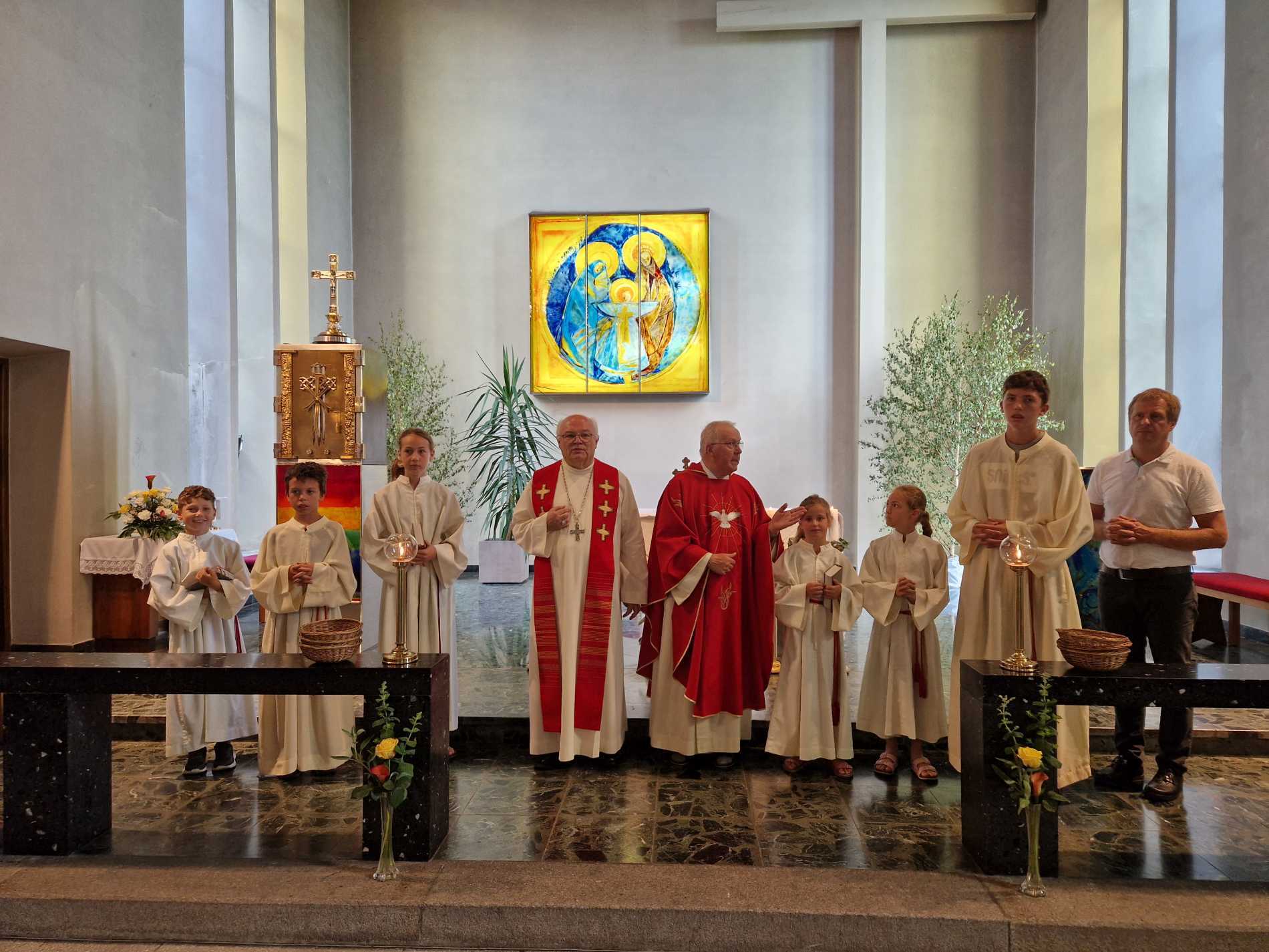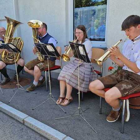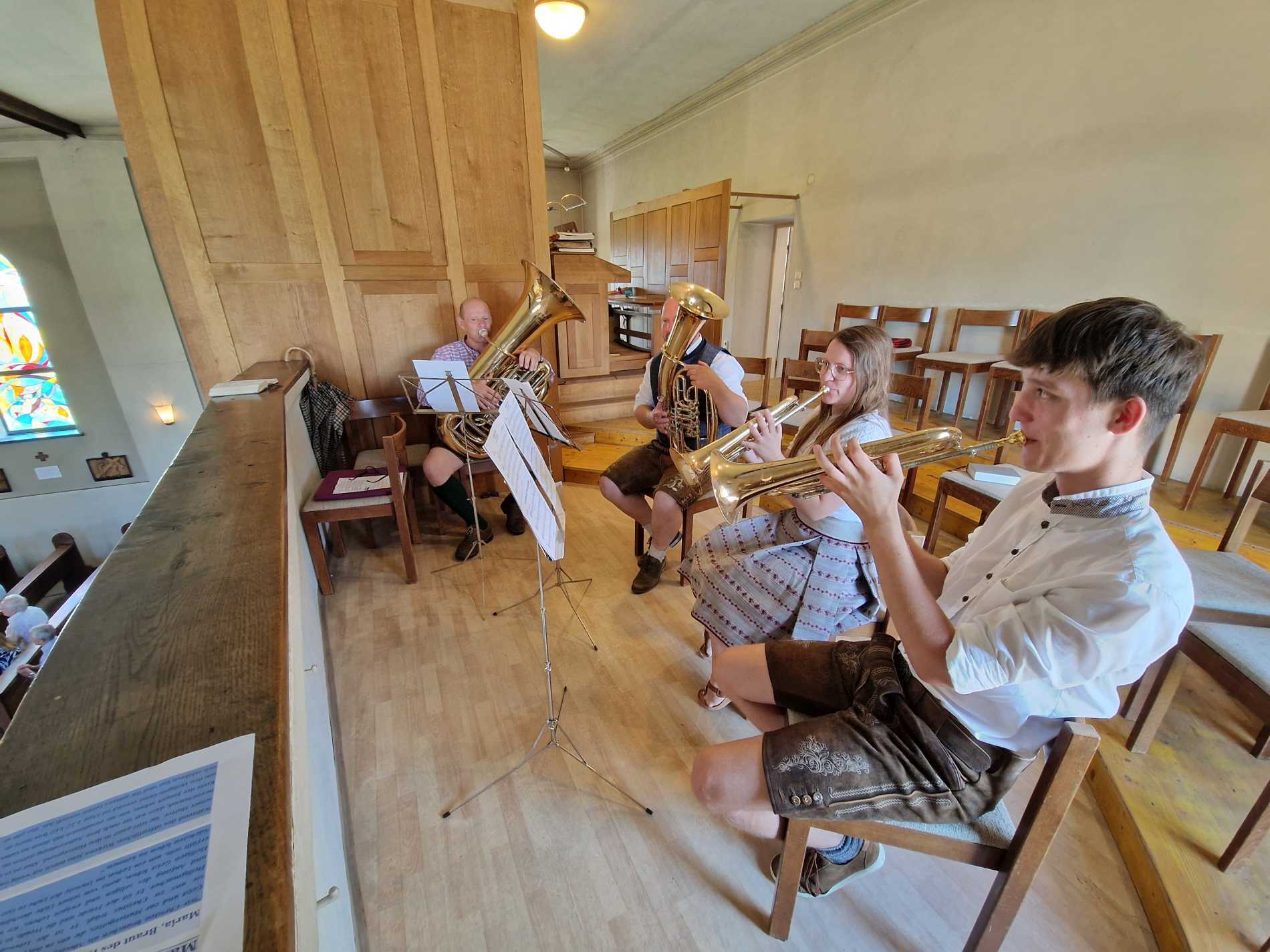 Der festliche Einzug wurde von einem Bläserensemble, bestehend aus seinen Verwandten, musikalisch begleitet. Das Bläserensemble sorgte auch beim Schlusslied – Großer Gott wir loben dich - und dem Auszug für einen würdevollen musikalischen Rahmen.