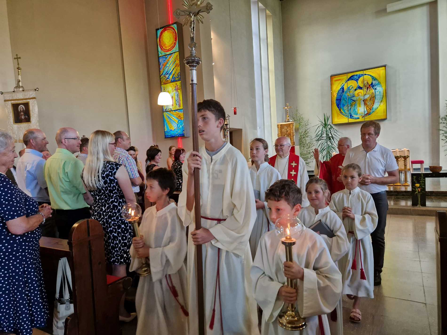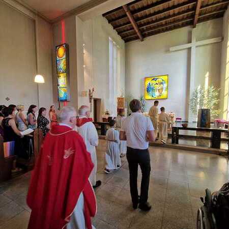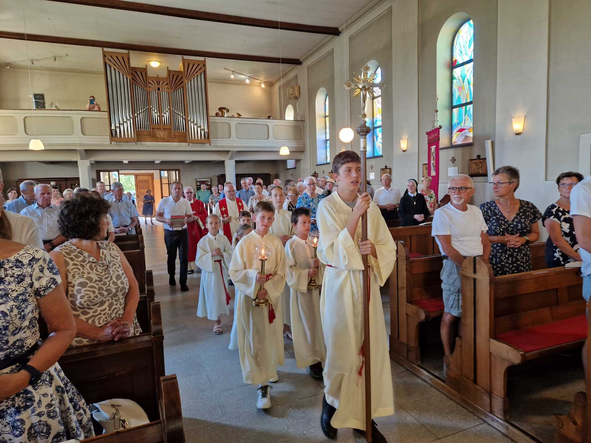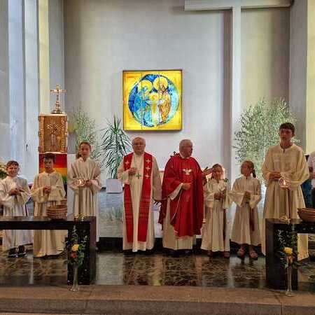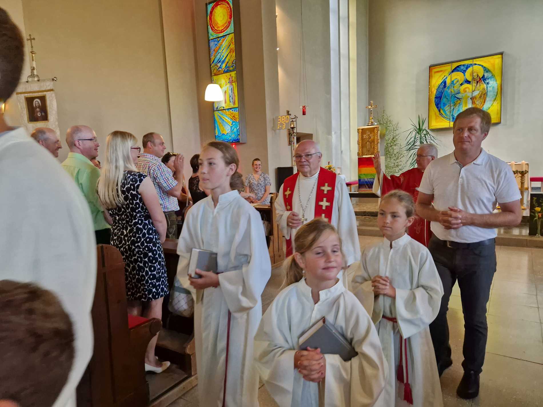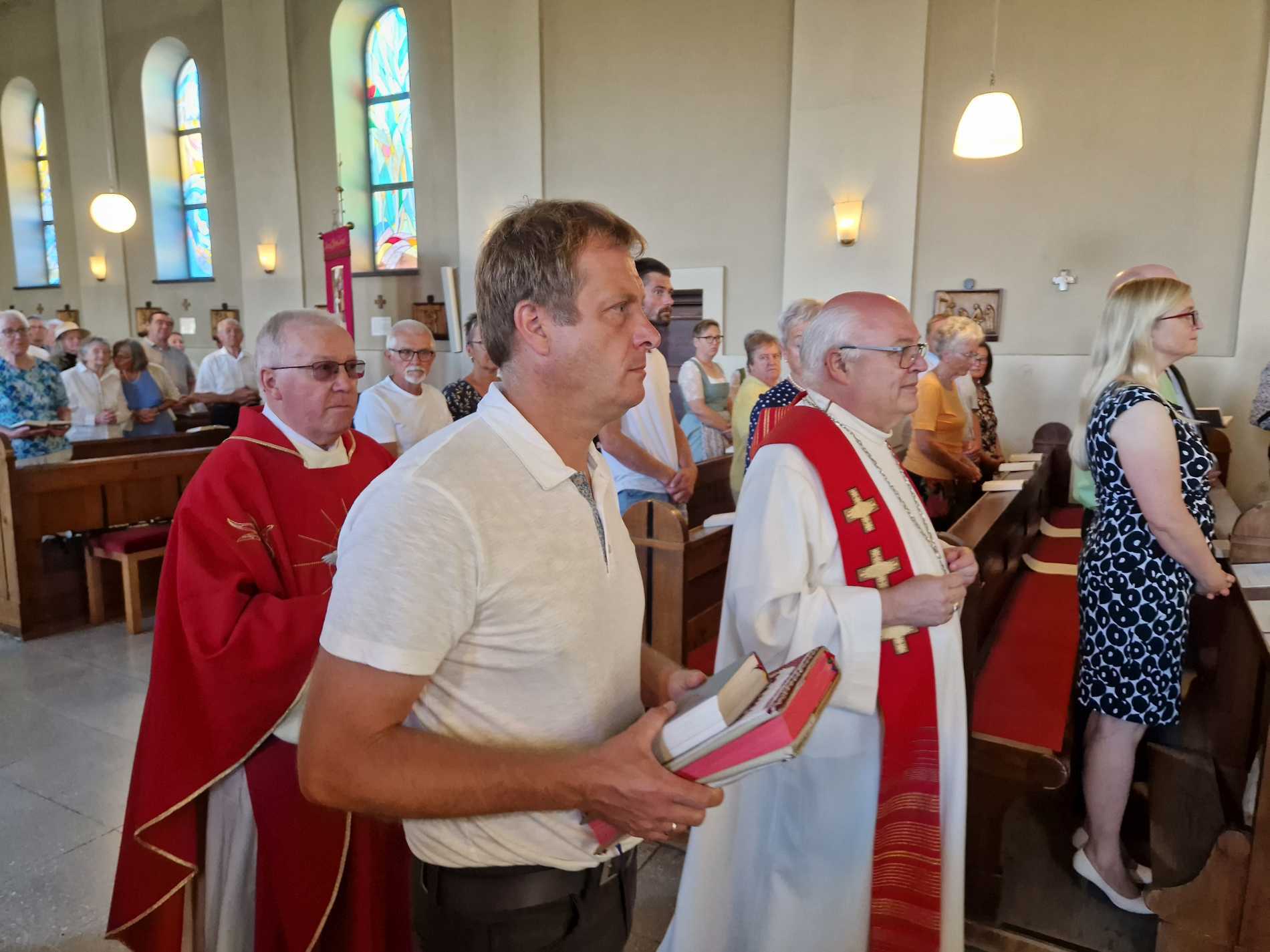 Der festliche Einzug wurde von einem Bläserensemble, bestehend aus seinen Verwandten, musikalisch begleitet. Das Bläserensemble sorgte auch beim Schlusslied – Großer Gott wir loben dich - und dem Auszug für einen würdevollen musikalischen Rahmen.