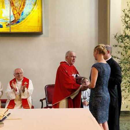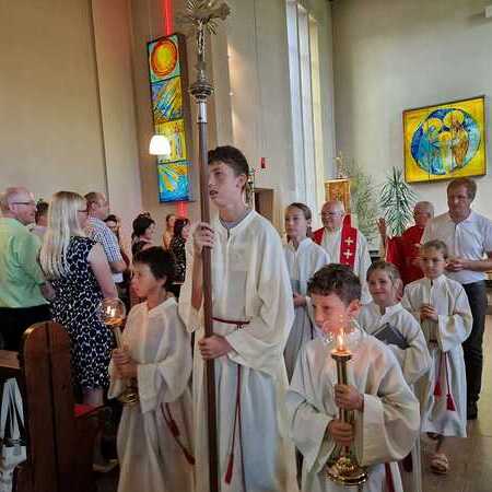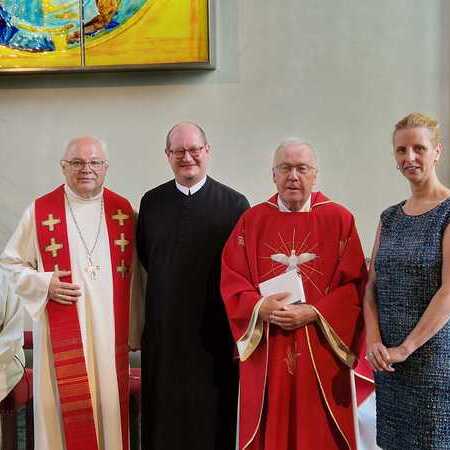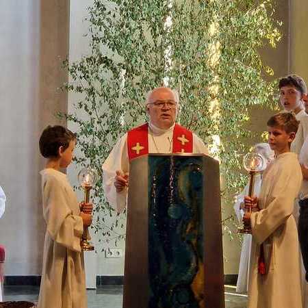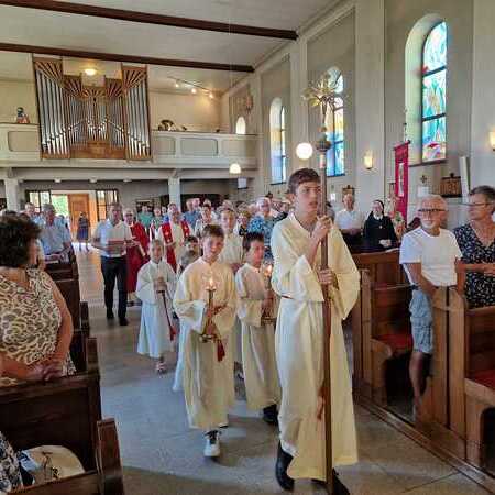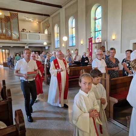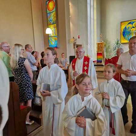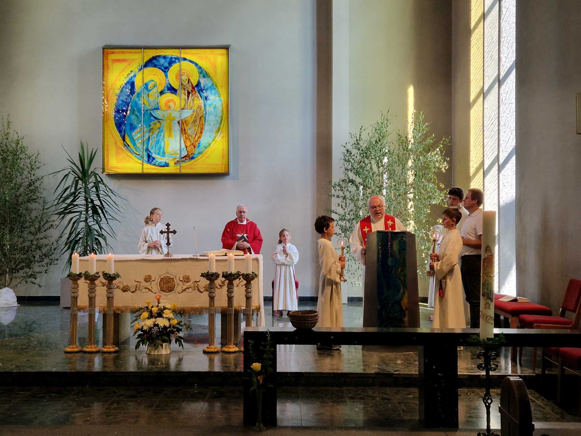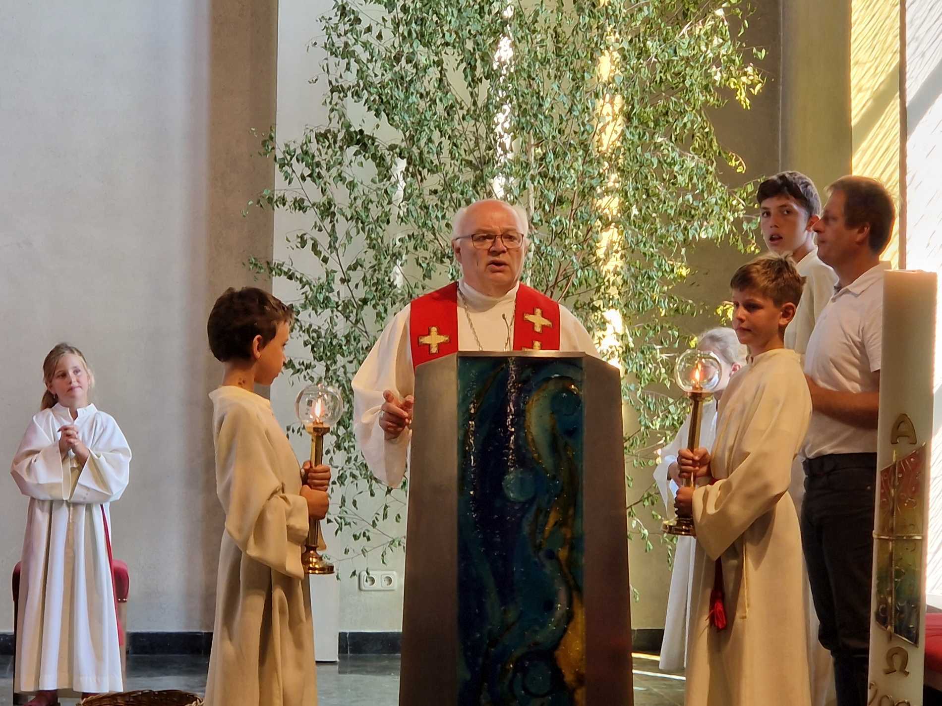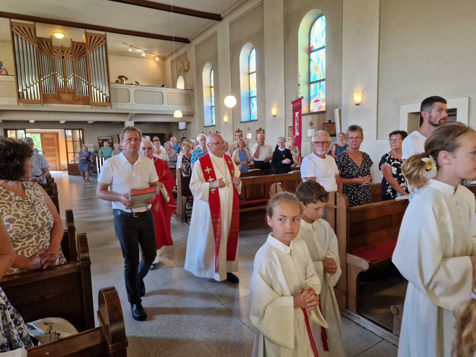 Der festliche Einzug wurde von einem Bläserensemble, bestehend aus seinen Verwandten, musikalisch begleitet. Das Bläserensemble sorgte auch beim Schlusslied – Großer Gott wir loben dich - und dem Auszug für einen würdevollen musikalischen Rahmen.