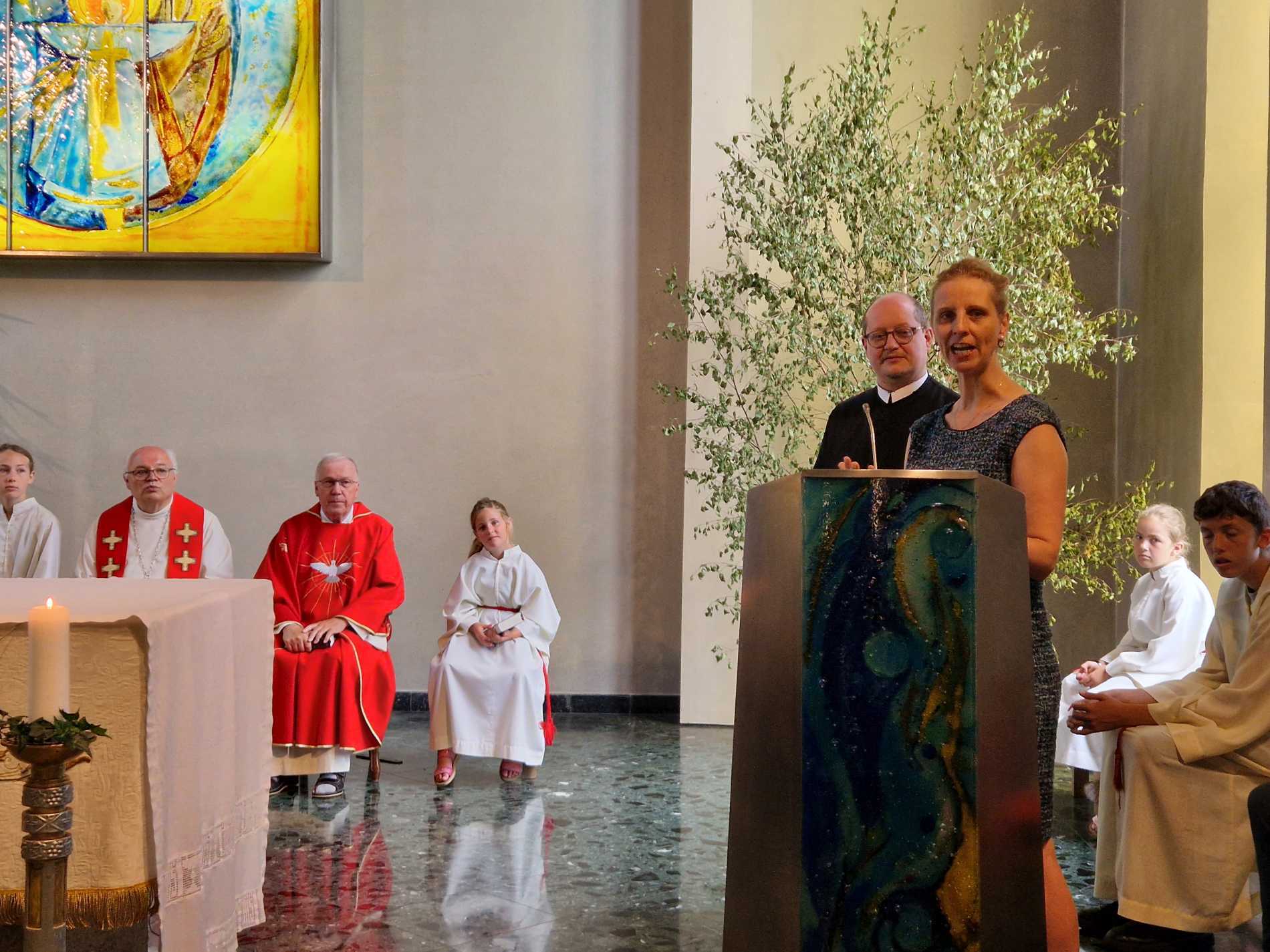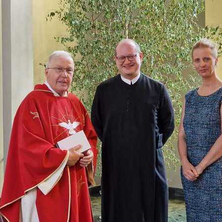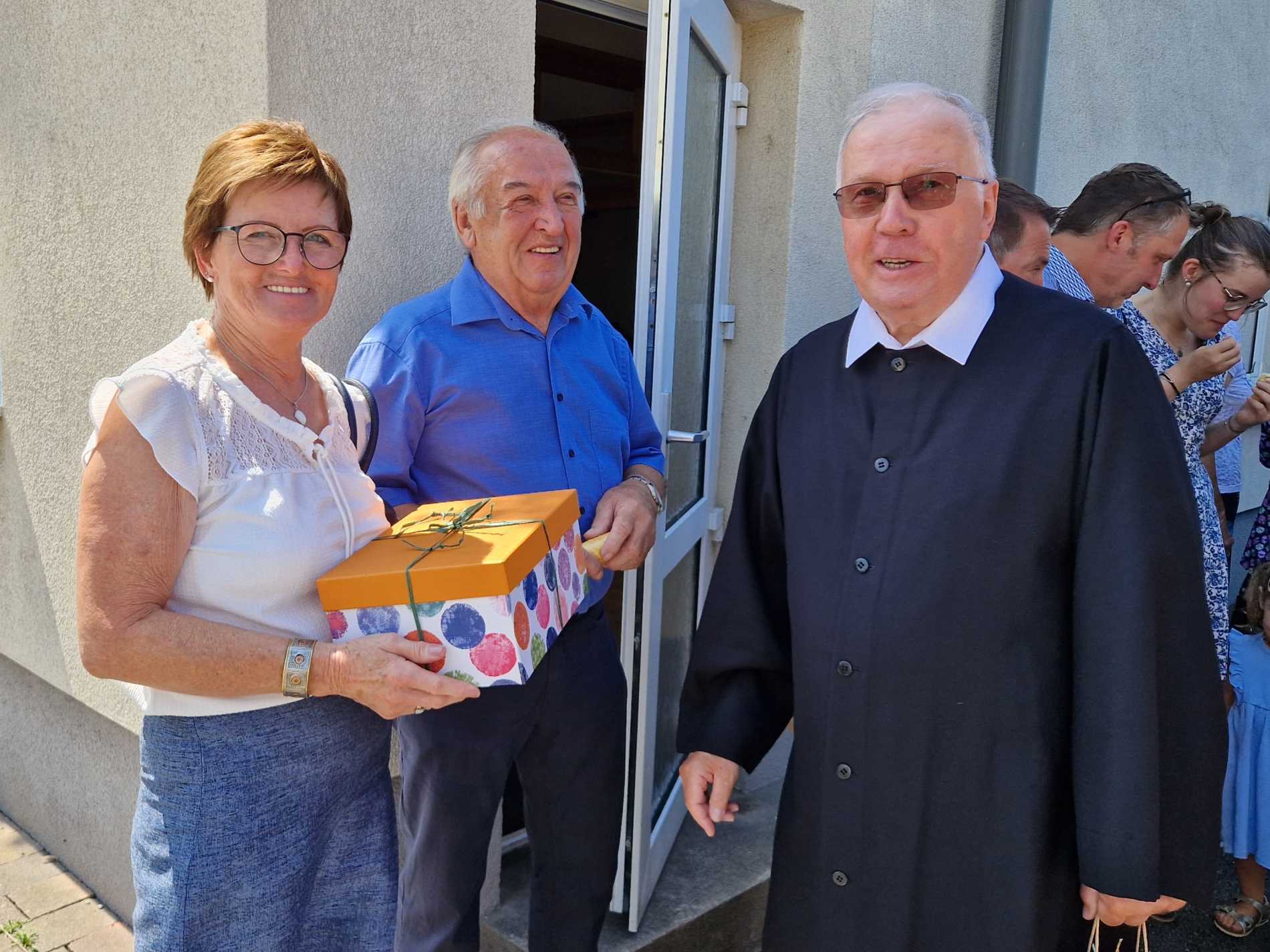 Am Ende der Hl. Messe bedankte sich Pfarrgemeinderatsobfrau Monika Hinterdorfer gemeinsam mit P. Vitus bei P. Severin für seine treue Unterstützung als Aushilfspriester in den Pfarren Kematen-Gleiß und Allhartsberg. Im Rahmen dieser Dankesworte überreichten sie ihm einen Gutschein für einen wohlverdienten Wanderurlaub in Südtirol.