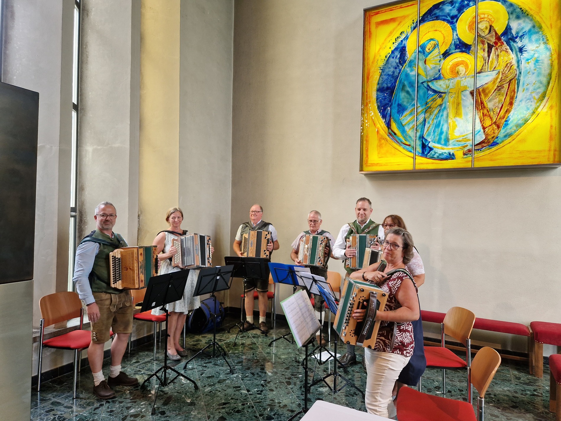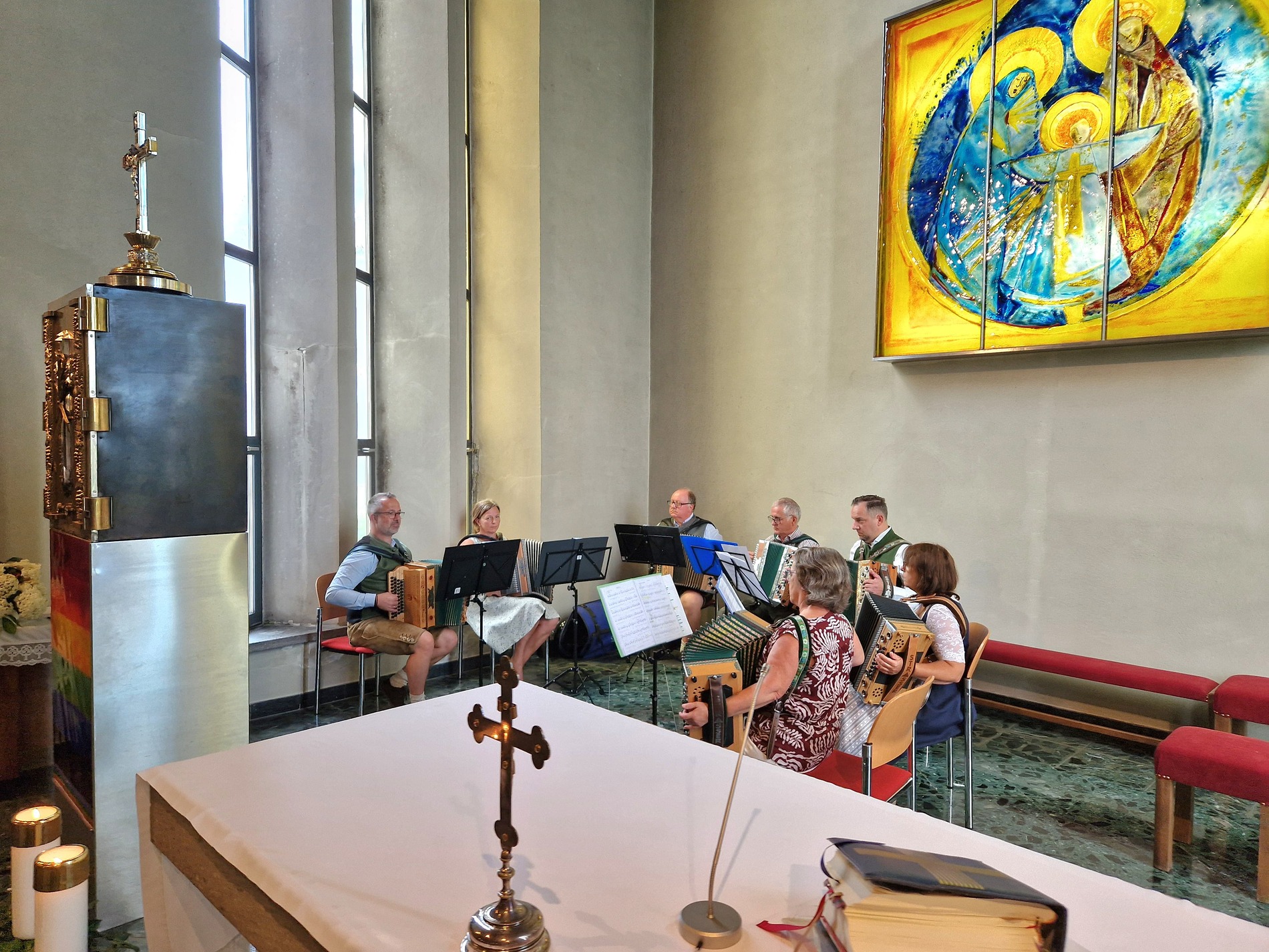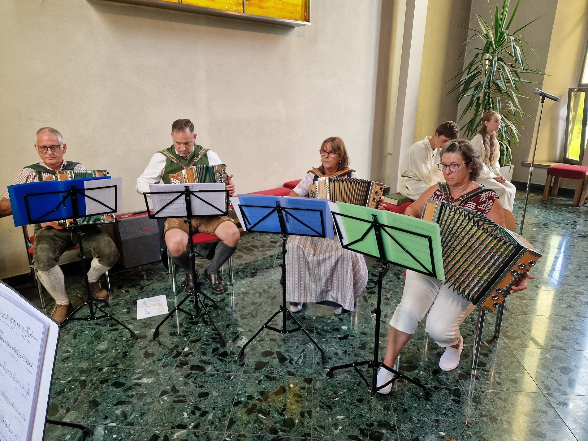 Am Sonntag, dem 13. Juli, feierte P. Vitus in der Pfarrkirche Kematen um 10 Uhr die Heilige Messe. Musikalisch wurde der Gottesdienst vom Michelbauer Harmonika-Ensemble unter der Leitung von Klaus Fehringer umrahmt.