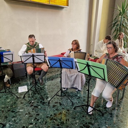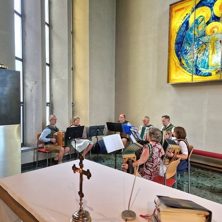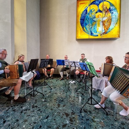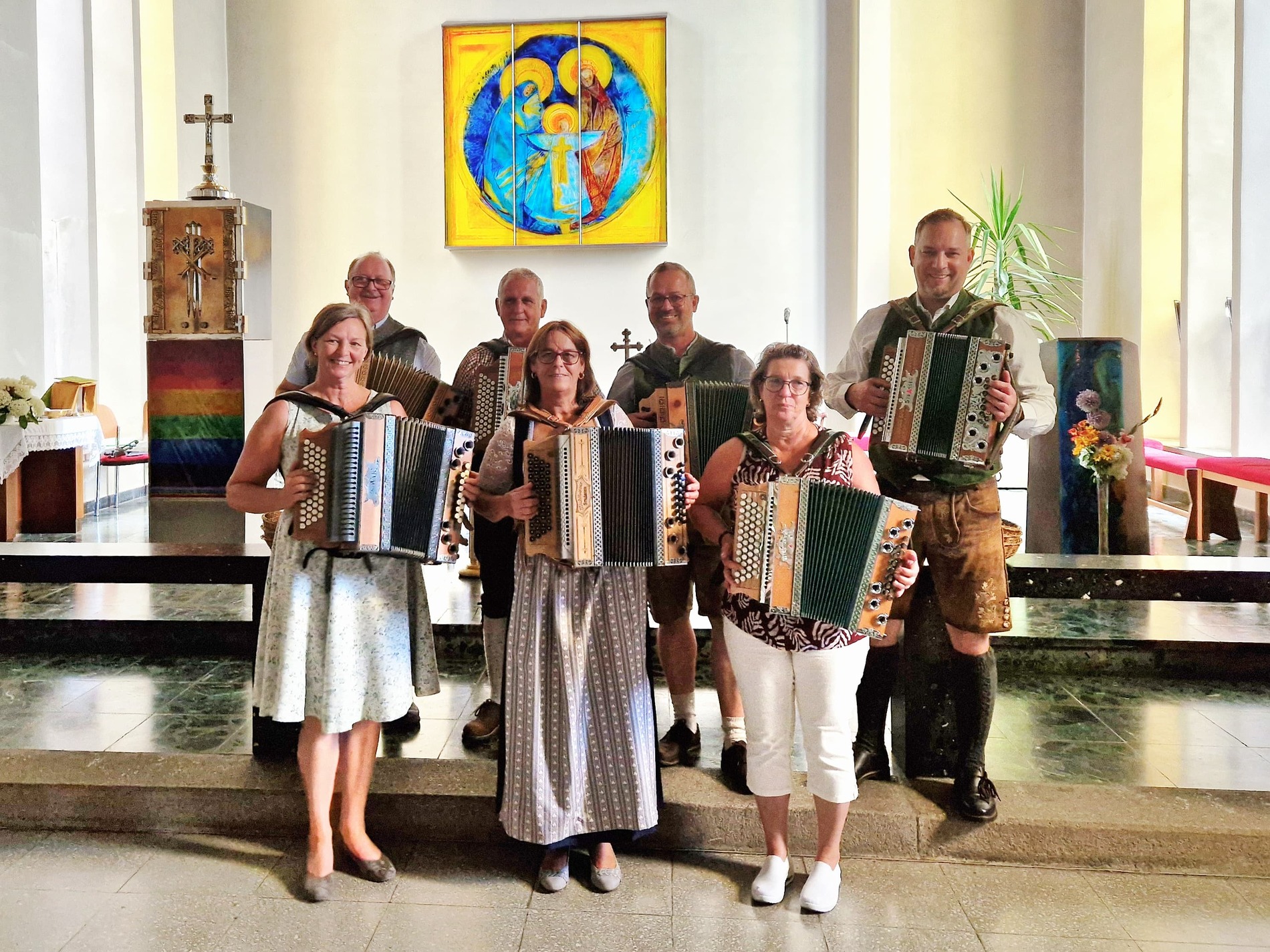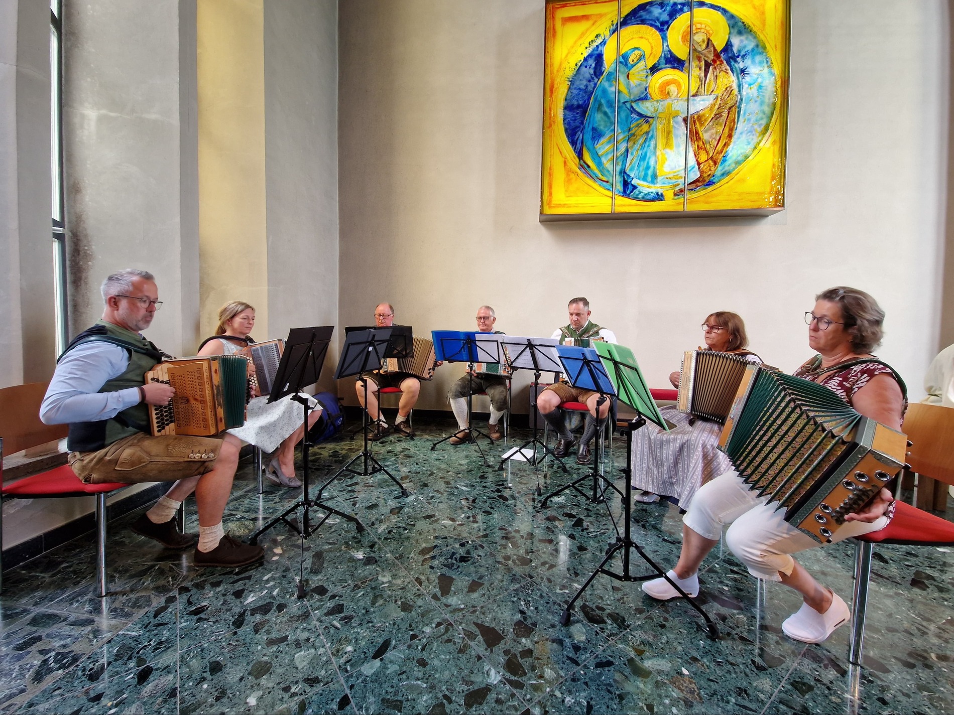 Am Sonntag, dem 13. Juli, feierte P. Vitus in der Pfarrkirche Kematen um 10 Uhr die Heilige Messe. Musikalisch wurde der Gottesdienst vom Michelbauer Harmonika-Ensemble unter der Leitung von Klaus Fehringer umrahmt.