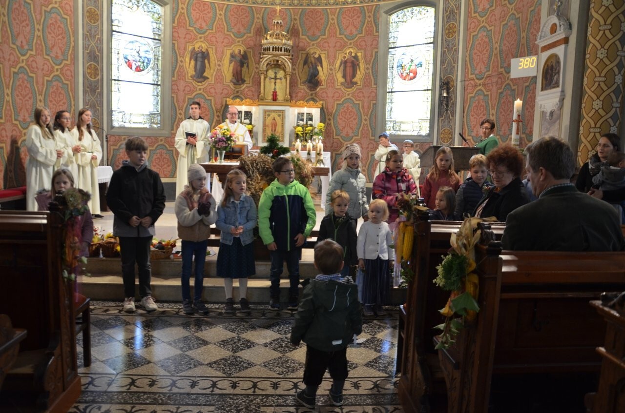 Für die Kinder gestaltete Fr. Helga Hornbachner mit ihrem Team eine eigene, liebevoll vorbereitete Kinderliturgie, die den jungen Teilnehmern das Thema des Dankens auf anschauliche Weise näherbrachte. Die Chorgemeinschaft Kematen-Gleiß umrahmte die Festmesse musikalisch und trug so zu einer besonders feierlichen Stimmung bei. Ein herzliches Dankeschön gilt auch der Landjugend Kematen, die beim Tragen der prächtigen Erntekrone tatkräftig mitwirkte.