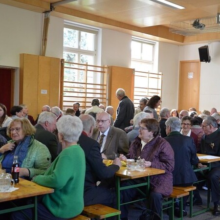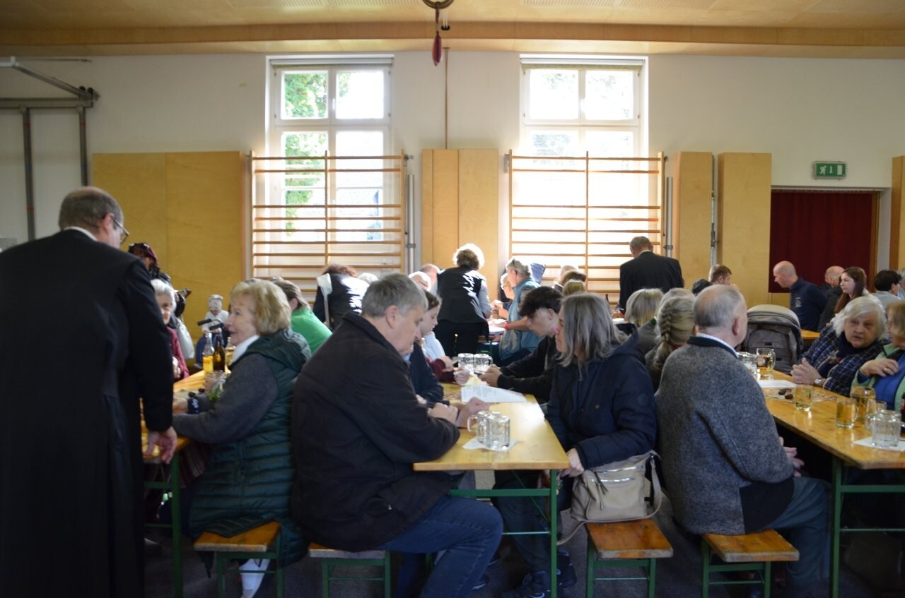 Im Anschluss an den Gottesdienst waren alle Besucherinnen und Besucher herzlich zum Pfarrfest im Turnsaal des Bildungszentrums eingeladen. Bei hervorragender Hausmannskost und gemütlichem Beisammensein klang der festliche Tag in froher Gemeinschaft aus.
