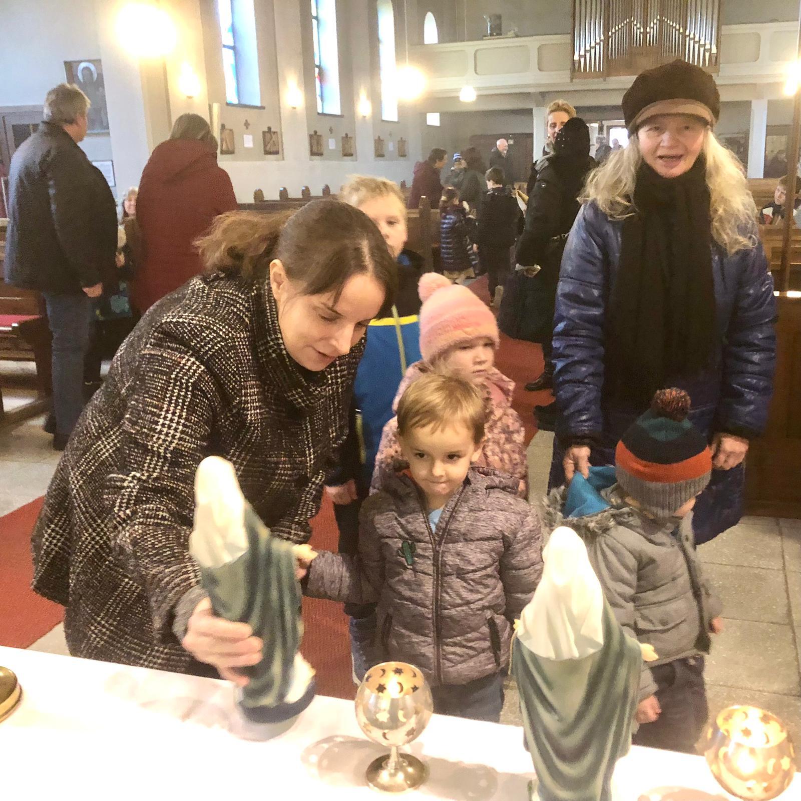 Am Ende der Heiligen Messe durften die Familien eine der 15 Marienstatuen für die Herbergssuche mit nach Hause nehmen. Die Statuen begleiten die Familien nun bis zum 24. Dezember auf ihrem Weg durch den Advent.