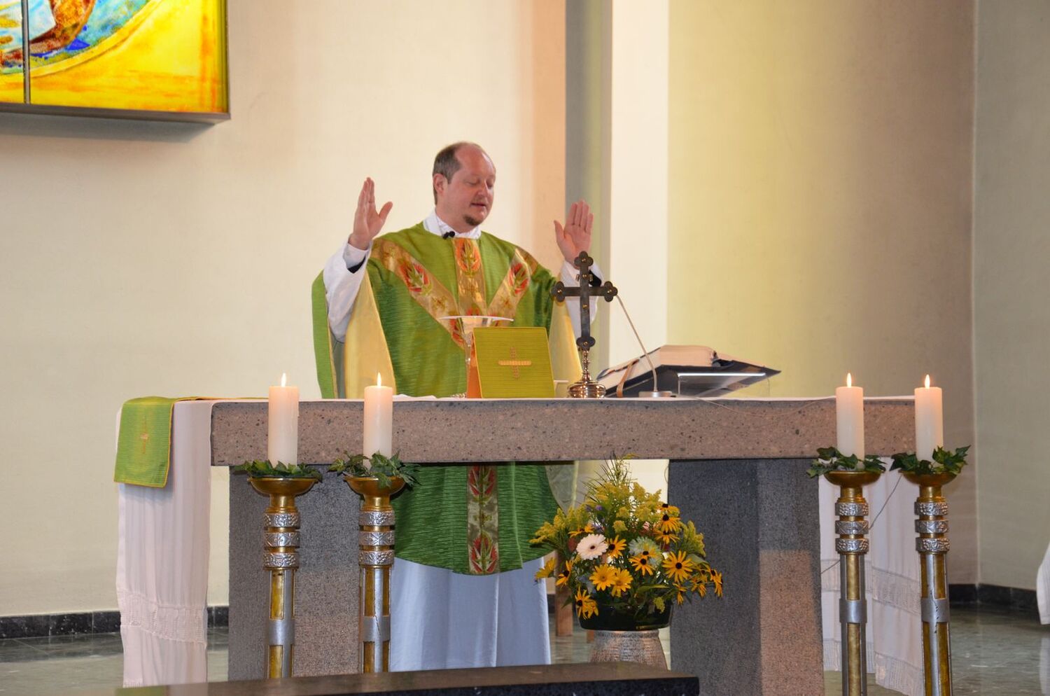 Er wird von Aushelfer P. Severin Ritt OSB sowie von den Wortgottesdienstleiterinnen Cilli Helm, Sabine Röcklinger, Petra Peirleitner und Sabine Klamert unterstützt.